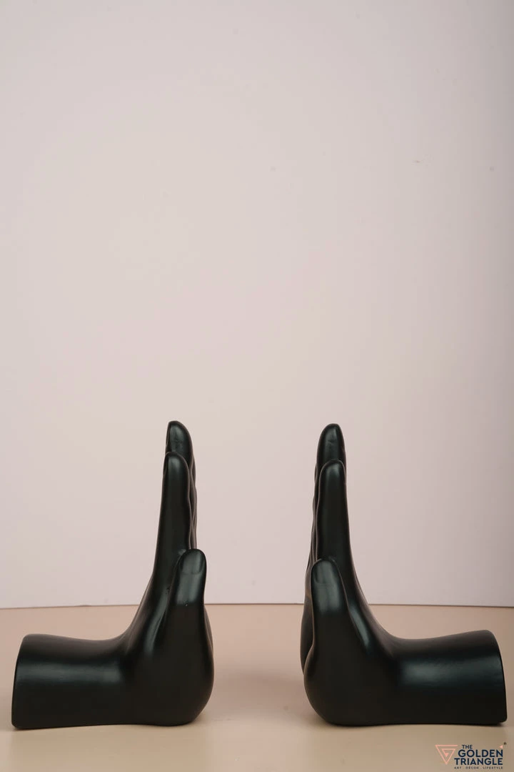 Place your favourite volumes between these hand bookends. Place a book in between the right hand palm facing the left palm. A perfect pair of book-support ornaments for your consoles and cabinets.