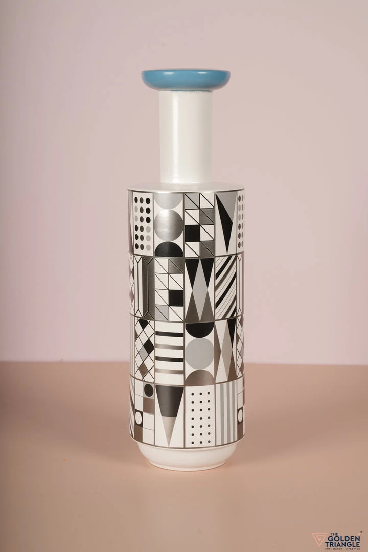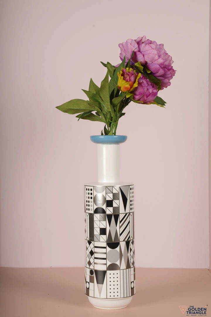Crafted for aesthetes who crave minimalism in their space, this geometric black and white aztec vase is a piece of art on its own..