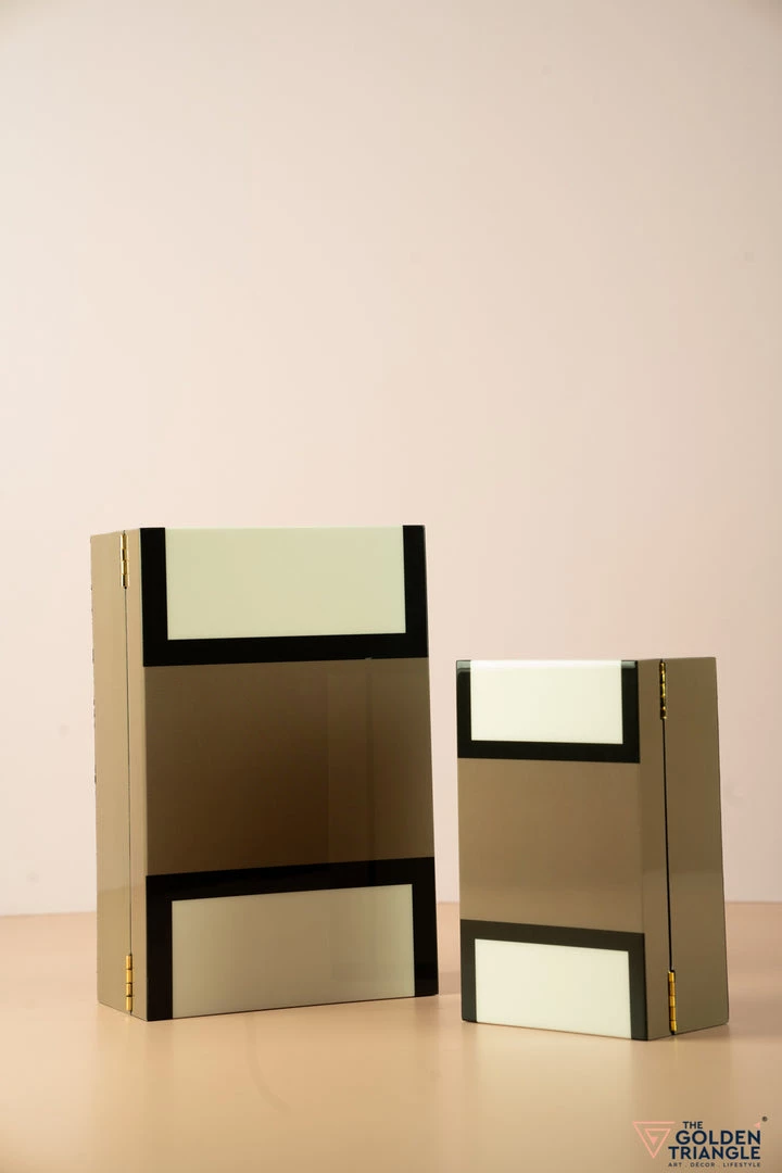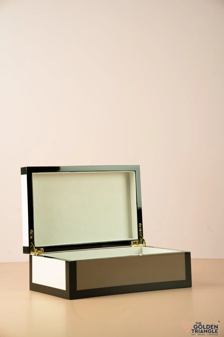 Finished in Piano Lacquer the box immediately attracts the eye with its symmetrical geometric pattern. Use it for storing your jewellery on a vanity or to organise your personal objects on a desk or table. This a modern, graphic storage box for your precious possessions. Available in various sizes these boxes are perfect for accessorising stashing, stacking or amazing a statement on your coffee table or dresser.Â