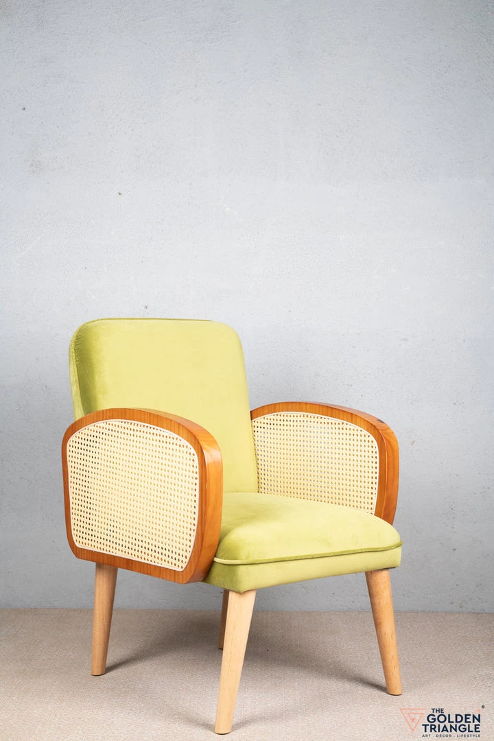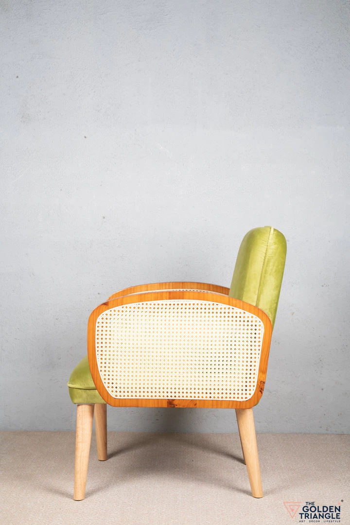 A Contemporary twist to your modern chair with this Rattan Back and Cushioned Seat. This lightweight construction and open weave design creates an eye catching piece that instantly brings an elegant trendy vibe to your living space. Handcrafted in synthetic Rattan with black metal legs