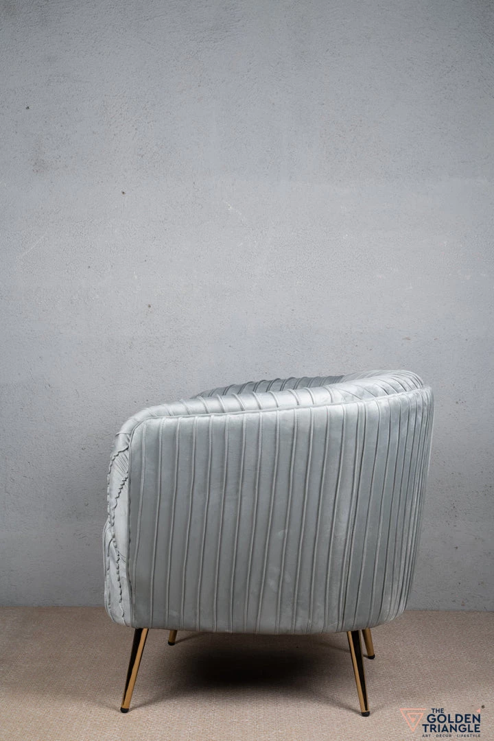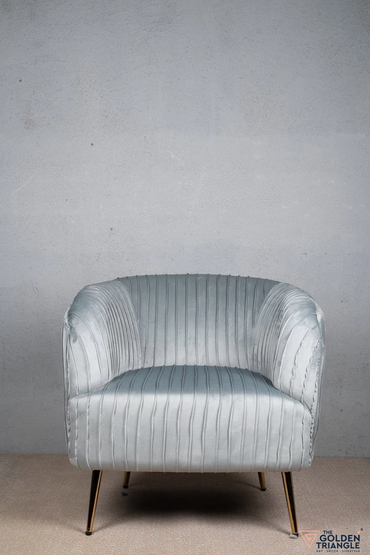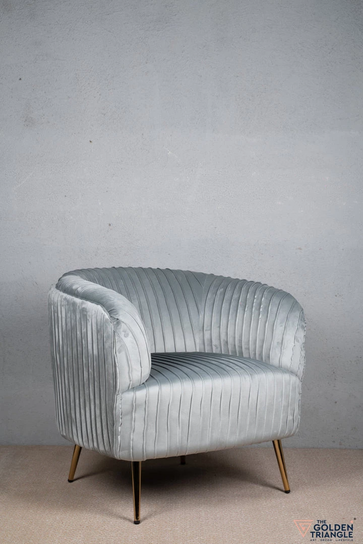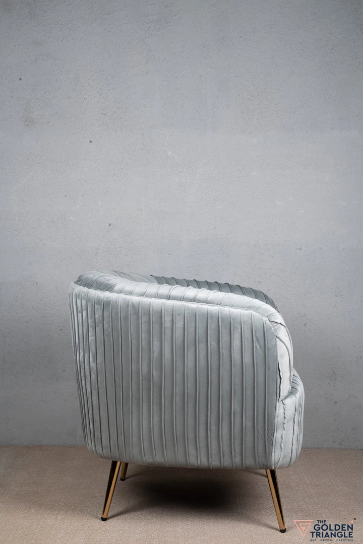 Present your home in modern style with a chair that brings a glamorous vibe. This classic design with pleated back will beautifully style your living room. Featuring a soft suede fabric and a very comfortable seating, this piece can change the whole look for your room..
