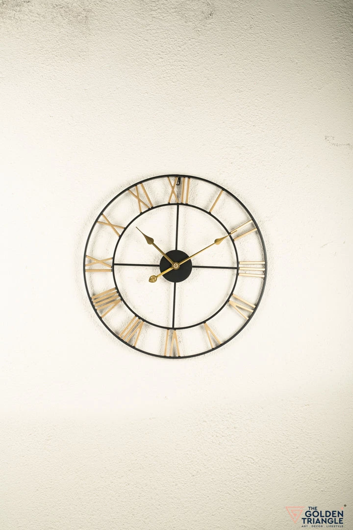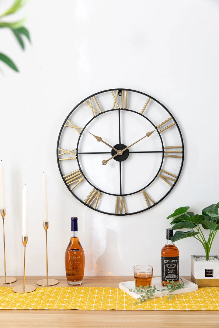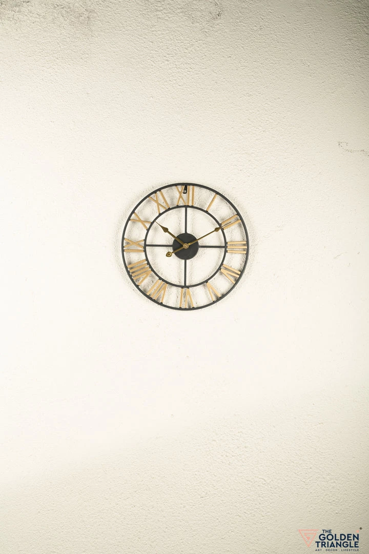 Transform an open and plain wall into a timeless focal point with this wall clock. A versatile addition that lends charm to any room. Crafted in metal, this piece features inner and outer rings connected by Roman numerals that bring classic appeal to your living room or bedroom. This open faced design is perfect for making a statement without overwhelming your arrangement.