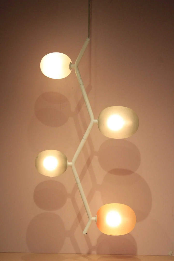 Frosted white lamps on a zigzag white frame is the kind of unique modern aesthetes can use for their space. This fixture could be perfect for your dressing area, living room or study.