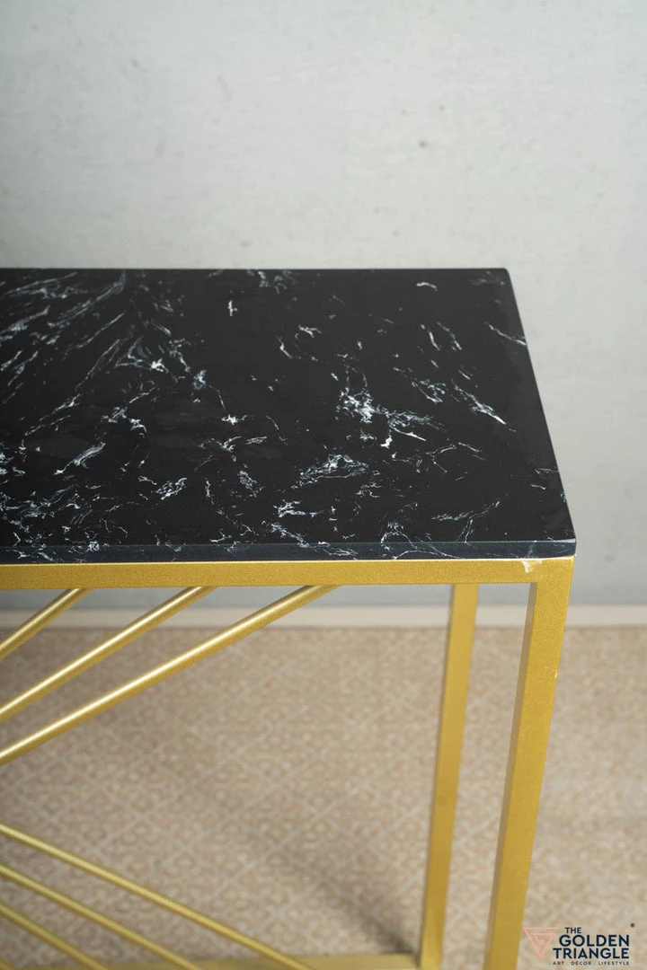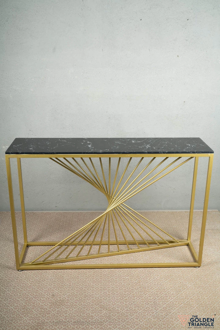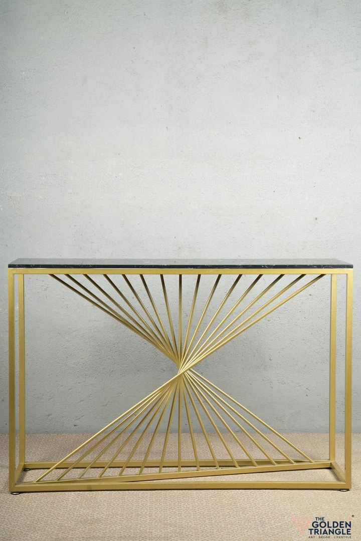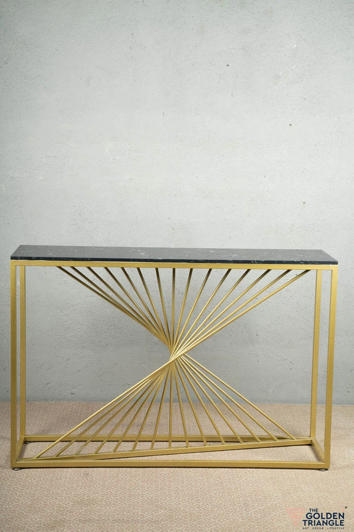 Simplicity stuns with this marble and Gold Metal console table.Simple and modern, it gives a touch of contemporary aesthetics to your abode. It serves as a platform for your magazines, framed photos, potted plants or any décor objects.The metal base provides strong support and the marble top completes the look.Tuck this contemporary console behind a living room sofa to hold remotes and family photos or near the entryway to keep accessories and everyday essentials close at hand.Â