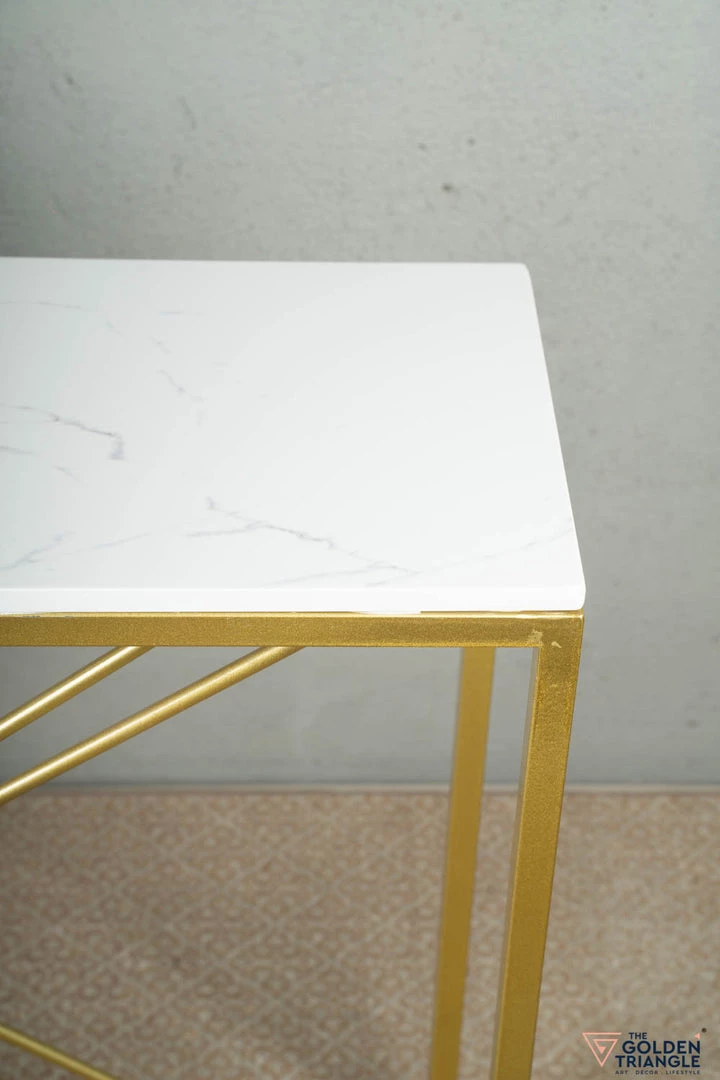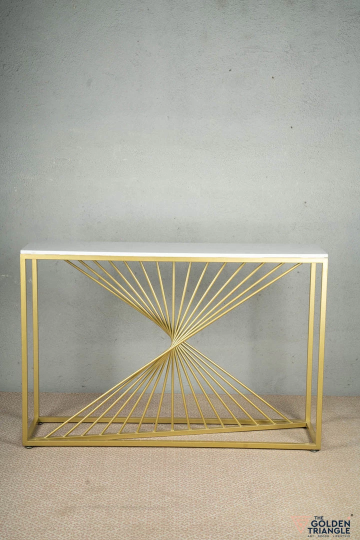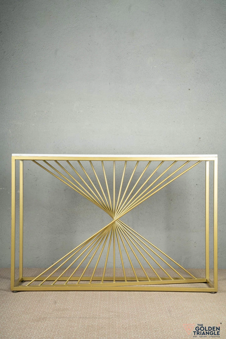 Simplicity stuns with this marble and Gold Metal console table.Simple and modern, it gives a touch of contemporary aesthetics to your abode. It serves as a platform for your magazines, framed photos, potted plants or any décor objects.The metal base provides strong support and the marble top completes the look.Tuck this contemporary console behind a living room sofa to hold remotes and family photos or near the entryway to keep accessories and everyday essentials close at hand.