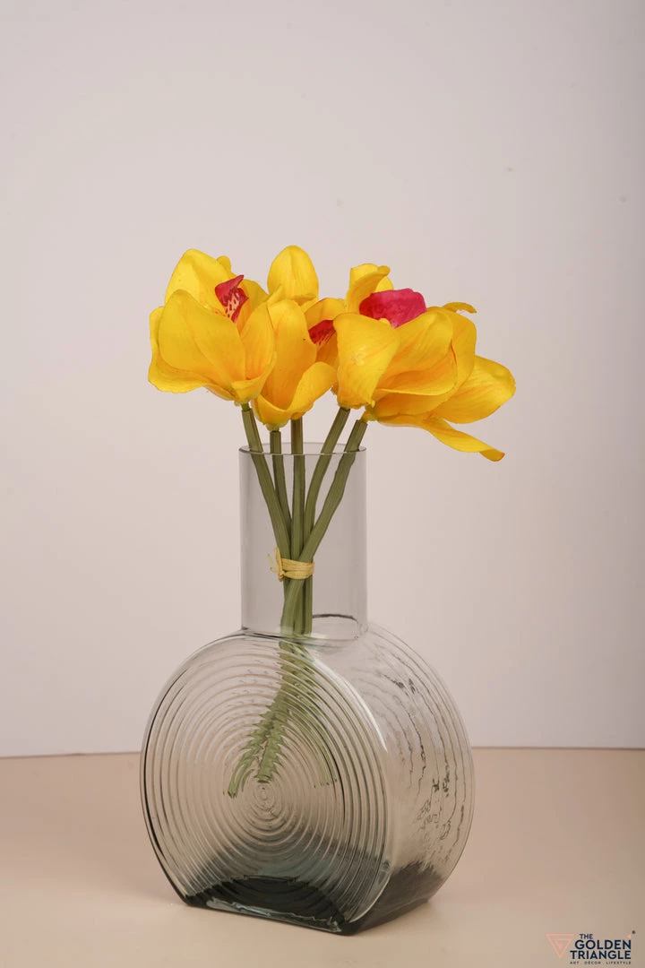 Fluted and Rippled for artistic effect, this translucent glass vase is an abstract and stunning abode for your faux and fresh florals.