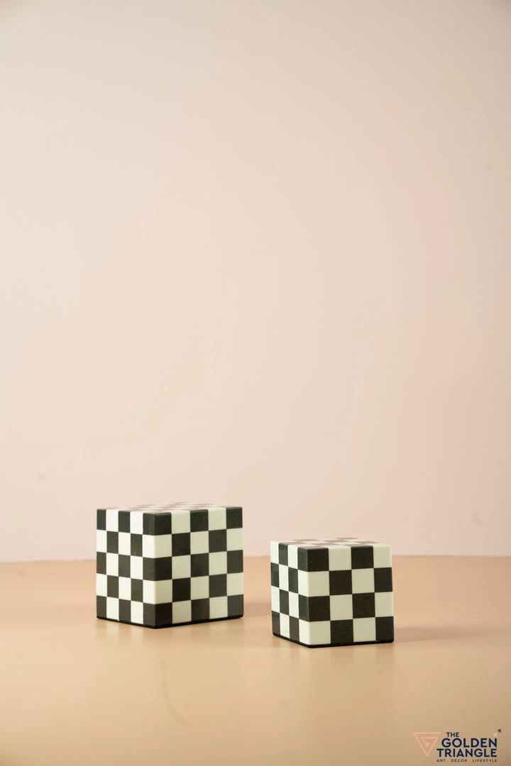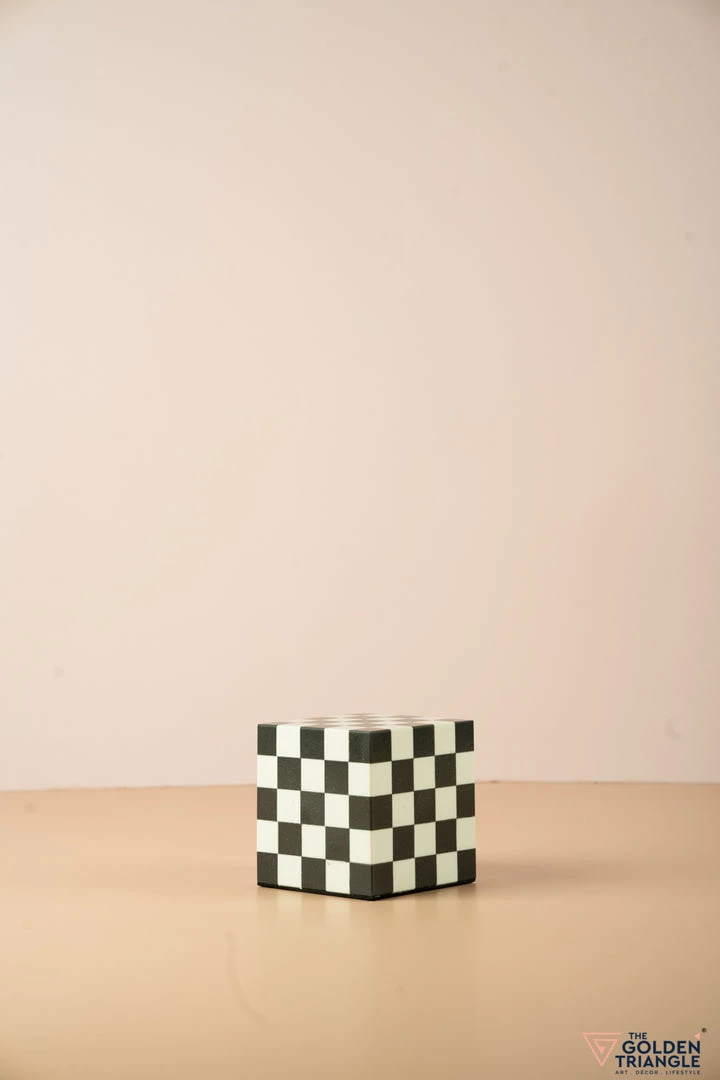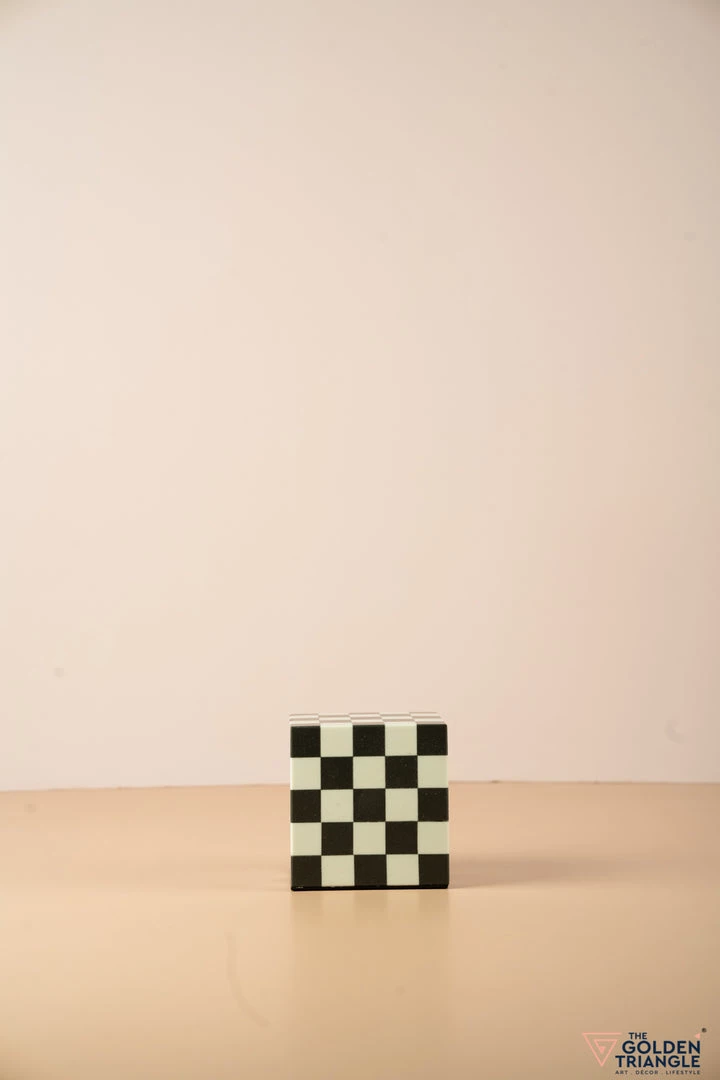 A trendy new marble accent for your home. A perfectly polished handcrafted marble piece, stark and perfectly simple. Stunning Coffee table styling with this checkered marble cube which can be placed on a console table or your office desk as a paper weight. It can be a fascinating addition on a bookshelf.