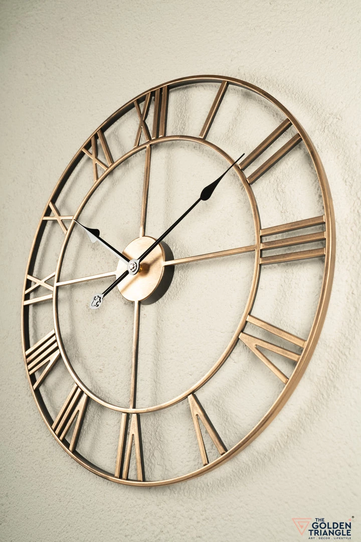 Transform an open and plain wall into a timeless focal point with this wall clock. A versatile addition that lends charm to any room. Crafted in metal, this piece features a metal ring and numerals that bring classic appeal to your living room or bedroom. This open faced design is perfect for making a statement without overwhelming your arrangement.