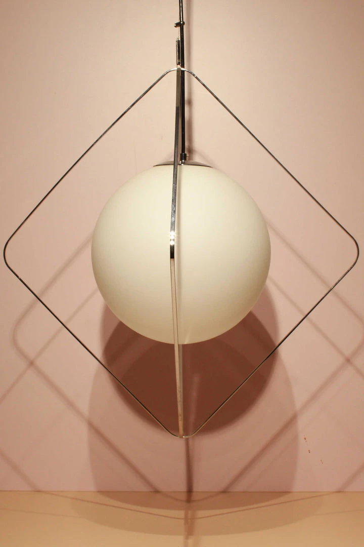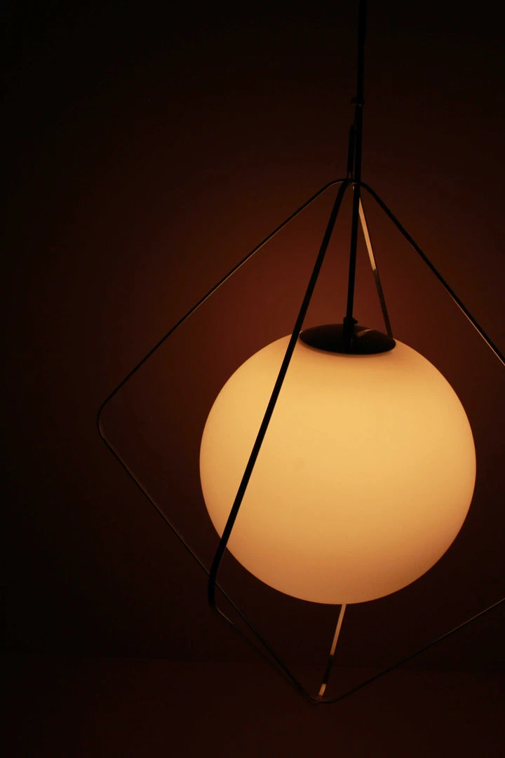 Framed in a slender diamond-shaped gold cage, this frosted white globe lamp is an attractive accessory that will match any design theme and color scheme.