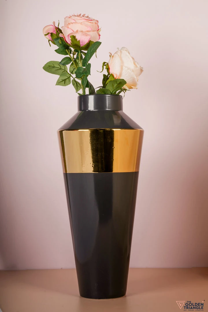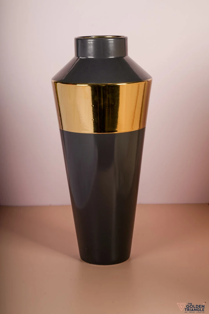 Store your sticks and blooms in this gold and white ceramic vase with a slender silhouette. A Vase that is elegant as a standalone piece too.