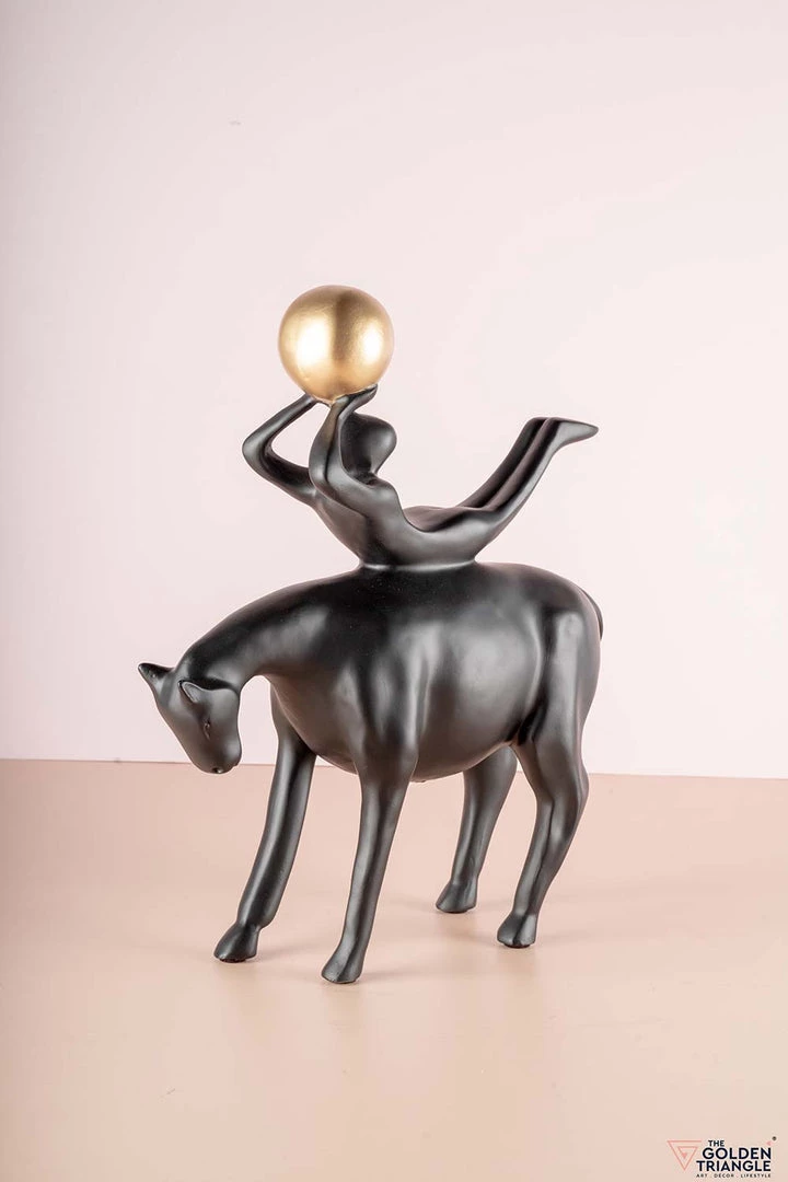 A gorgeous dark horse with a gymnast and metallic gold ball will make for a stunning centerpiece for your consoles and tabletops.