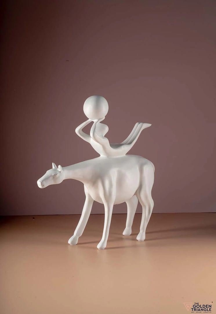 A gorgeous white horse with a gymnast holding a ball will make for a stunning centerpiece for your consoles and tabletops.