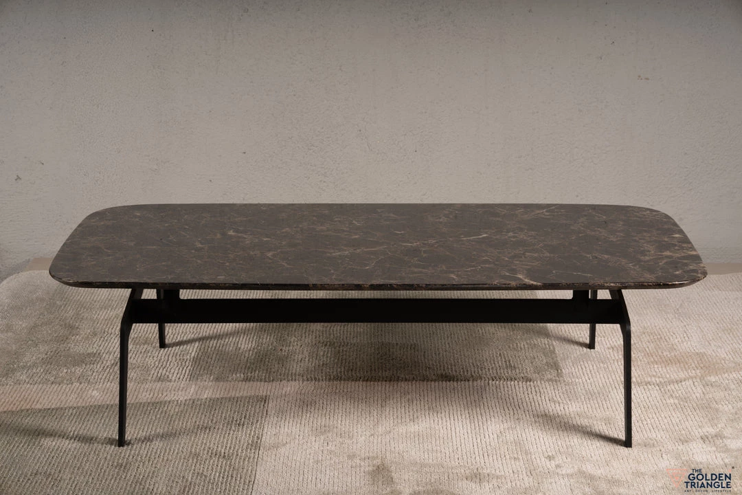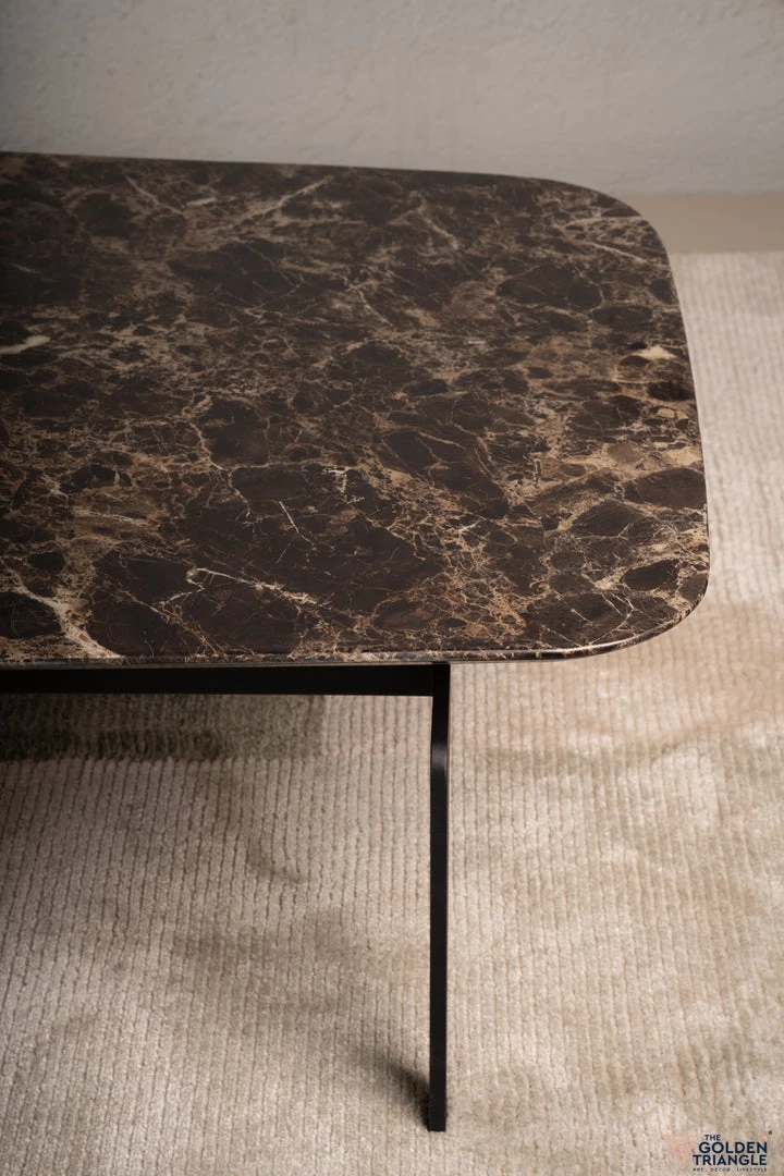 This piece showcases a rectangle silhouette, exuding contemporary appeal. Cosy, contemporary, opulent, this coffee table is onto it. A refined combination of marble top and metal frame, this table feels simple and modern. Perfect for your Coffee mornings and Dessert evening.
