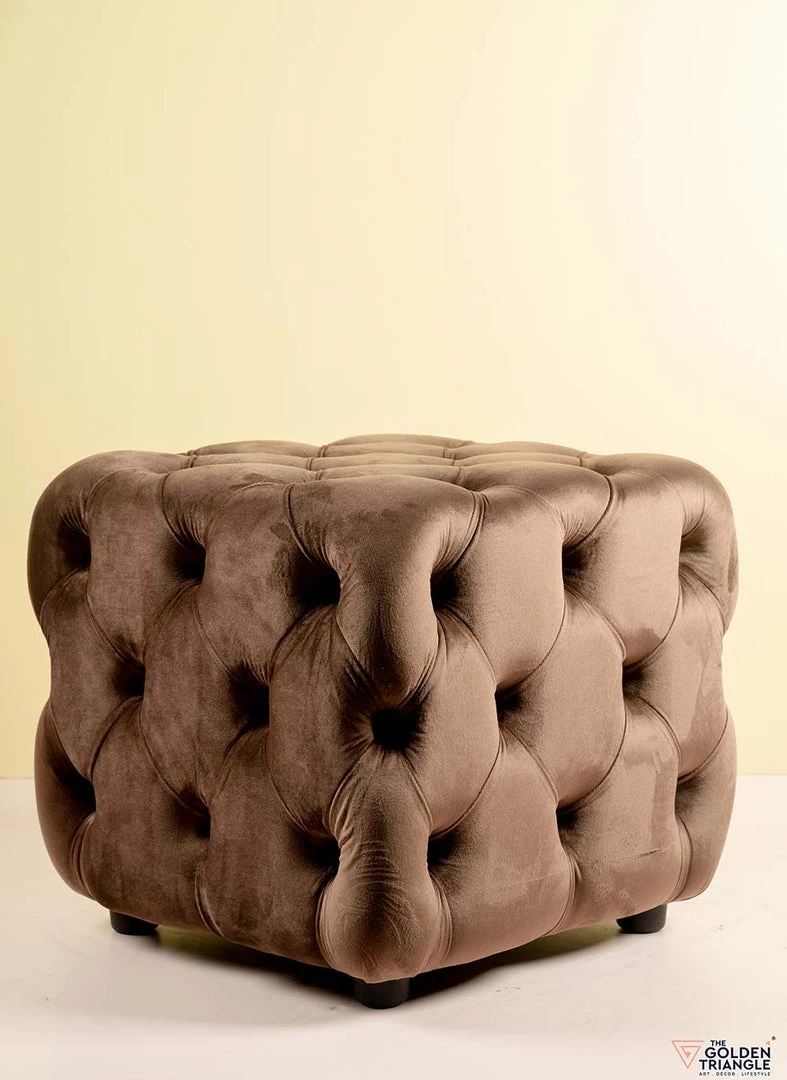 The-Golden-Triangle-India Furniture Destan Chesterfield Ottoman – Ginger Brown