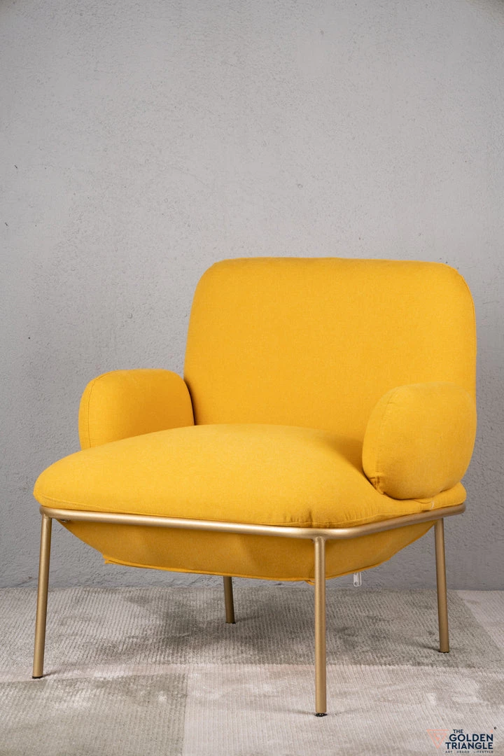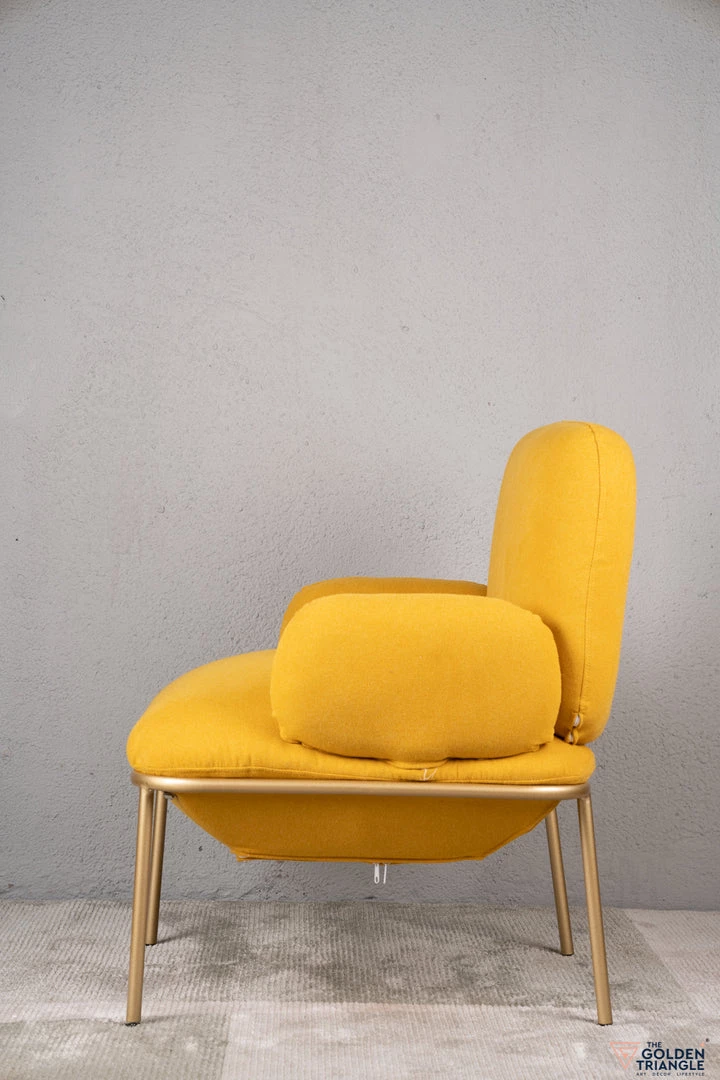 From its soft inviting curves to the comfortable cushioning, every detail of this chair is irresistible. Comfortably Cushioned and covered in soft fabric sitting on metal legs, this chair is perfect for your living room or Office space.