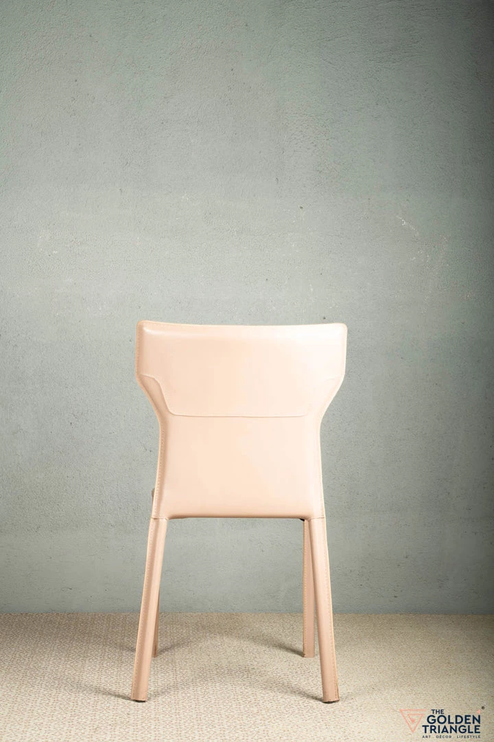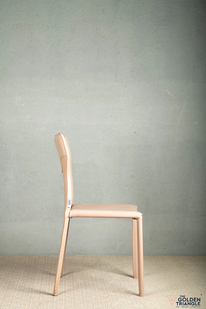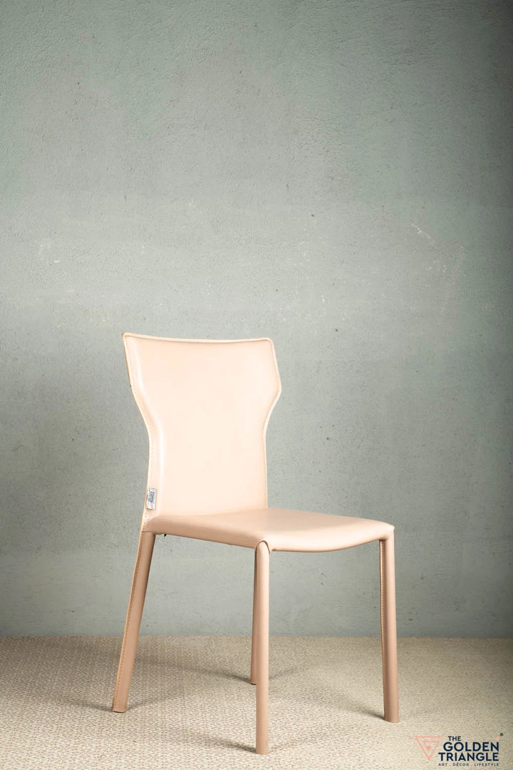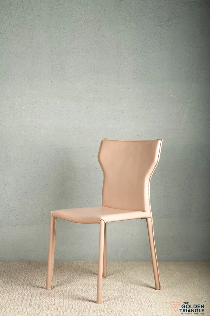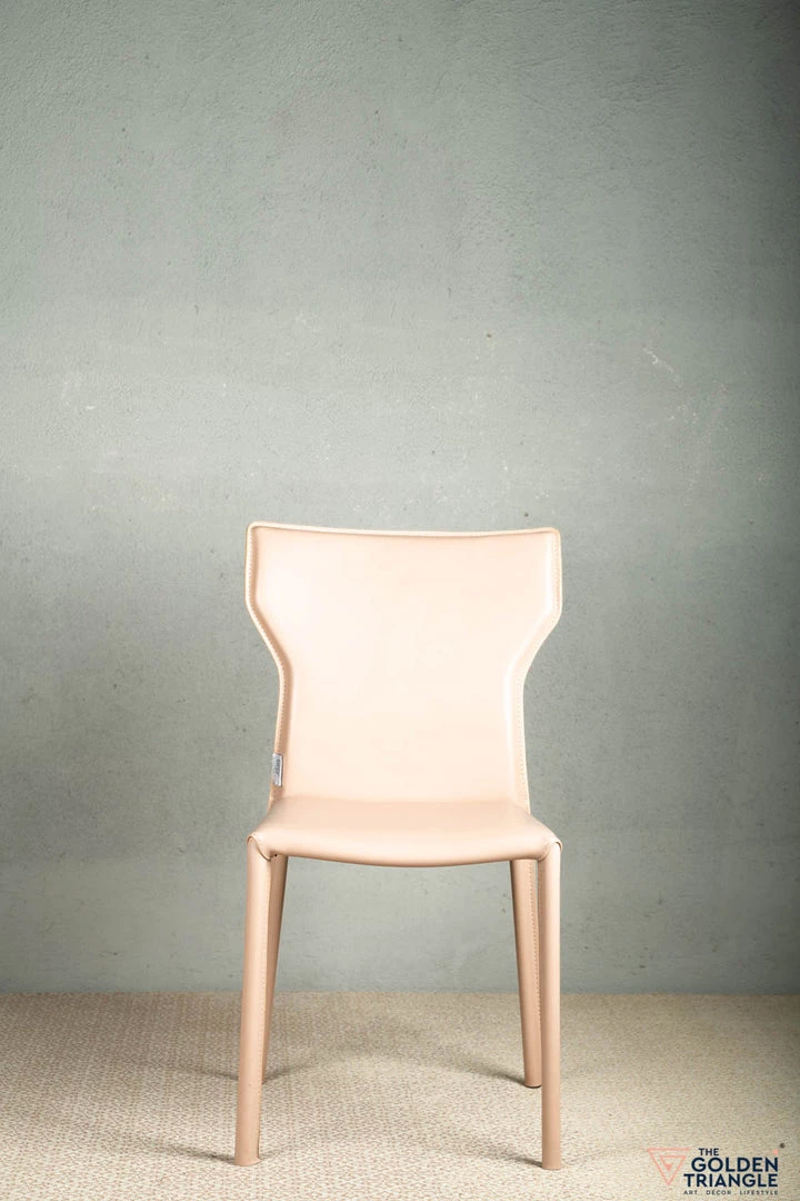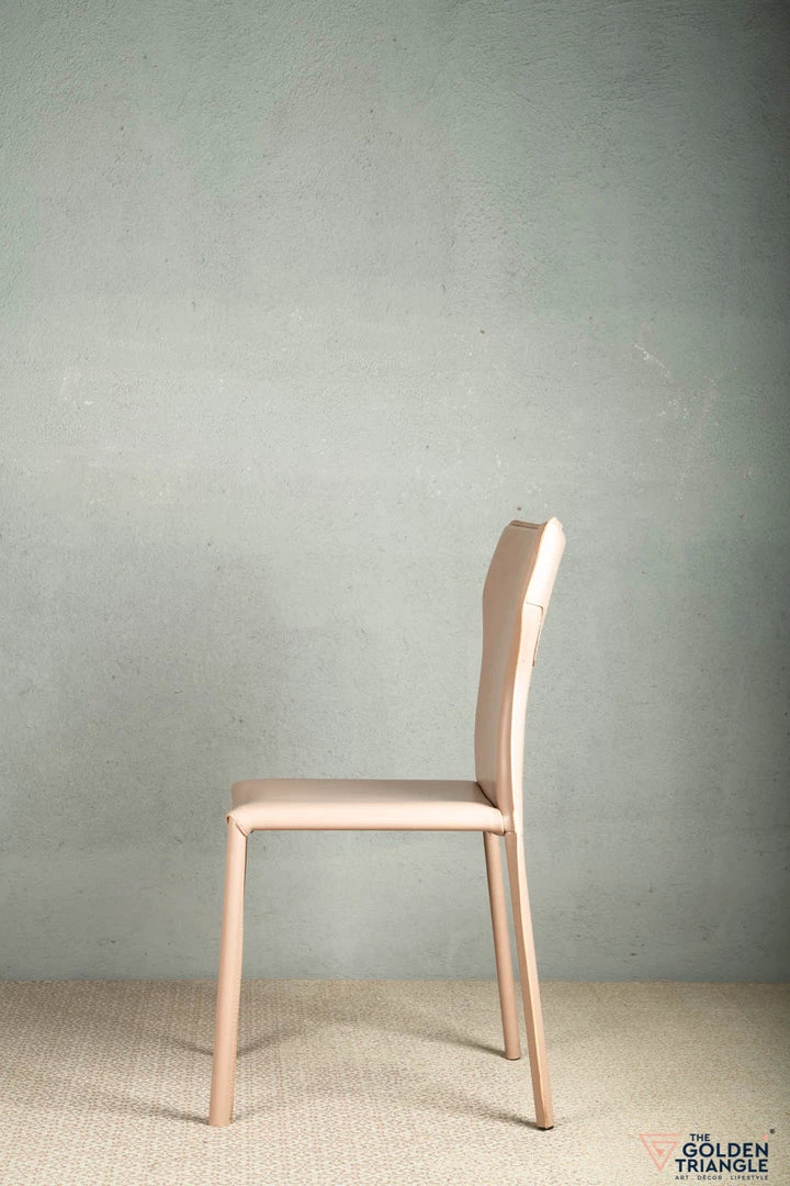 This nude no-nonsense dining chair is apt for all you minimalists. Its slender and sleek silhouette is covered in faux leather and add to its airy charm.