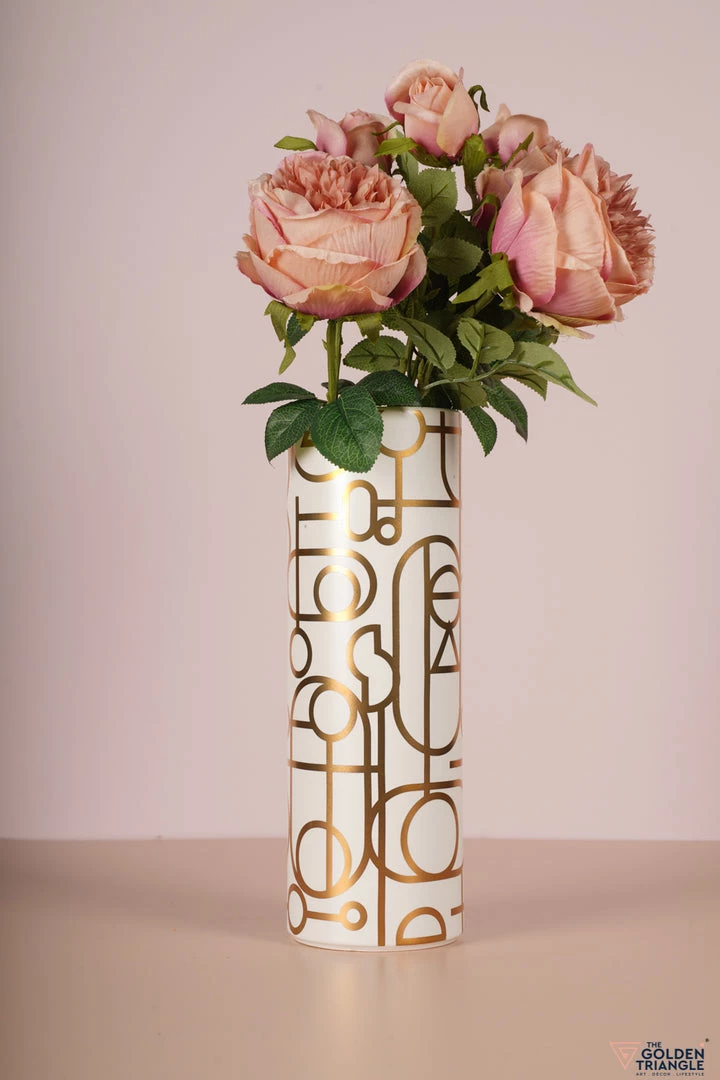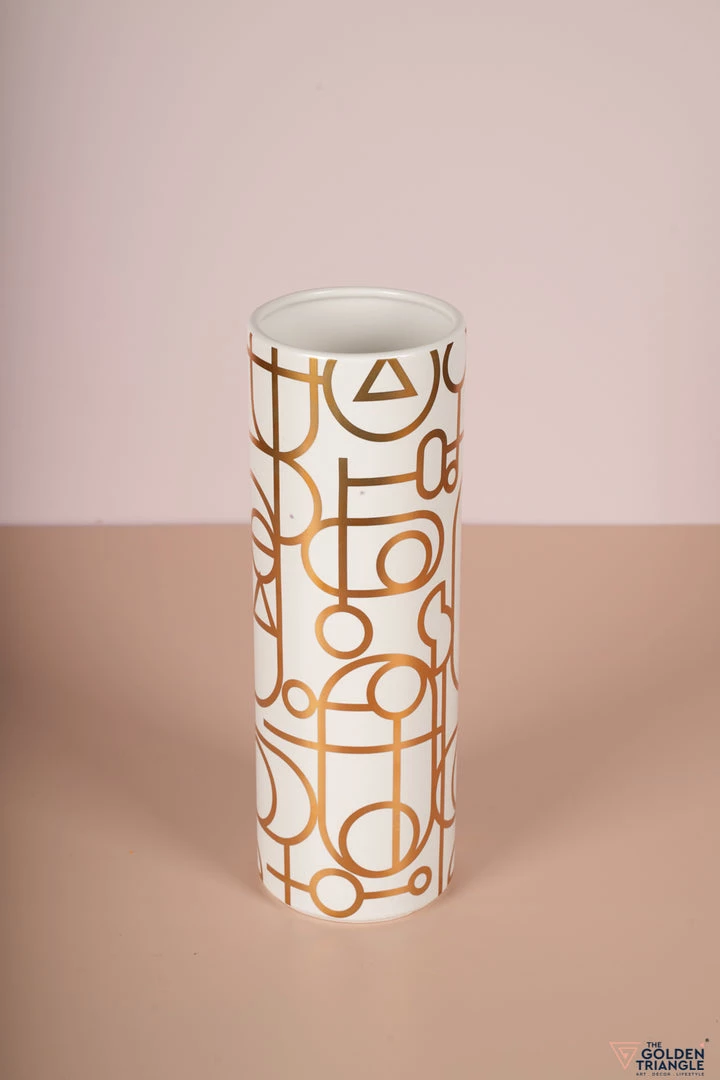 Store your sticks and blooms in this gold and white ceramic vase with a slender silhouette. A Vase that is elegant as a standalone piece too.