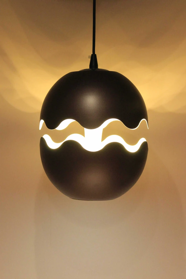 Reminiscent of a decadent chocolate, this globe-like hanging light with a curvy hollow center will add a touch of abstract modernity to your living space.