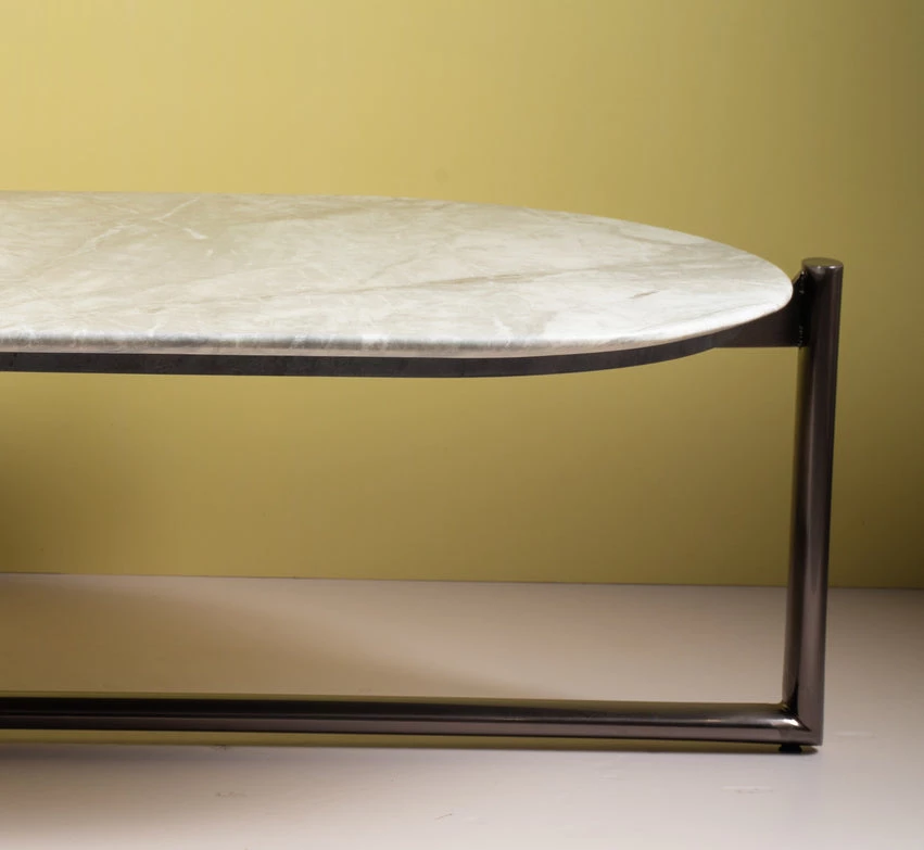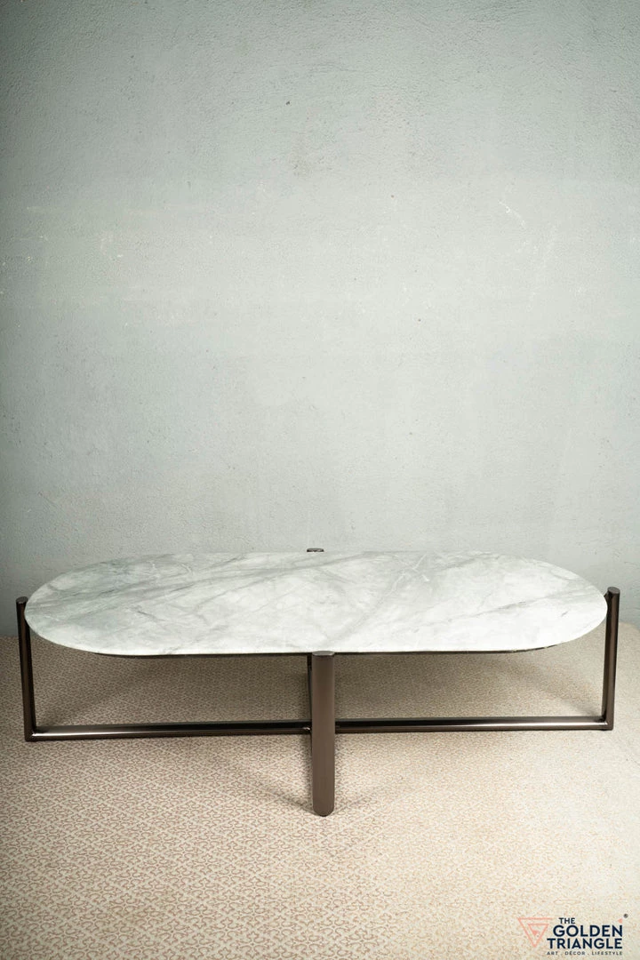 This coffee table mixes a modern style and contemporary design. This table brings sleek, contemporary design to your living room, while providing a handy spot to rest your morning cup of coffee. A refined combination of marble top and metal frame, this table feels simple and modern. Perfect for your Coffee mornings and Dessert evening.