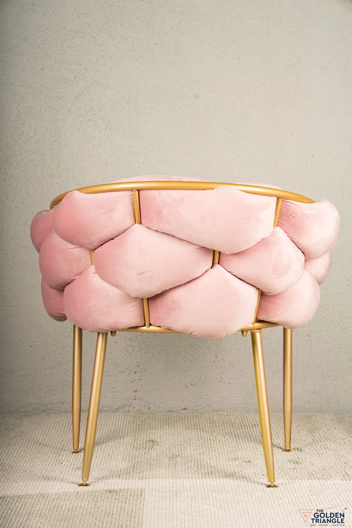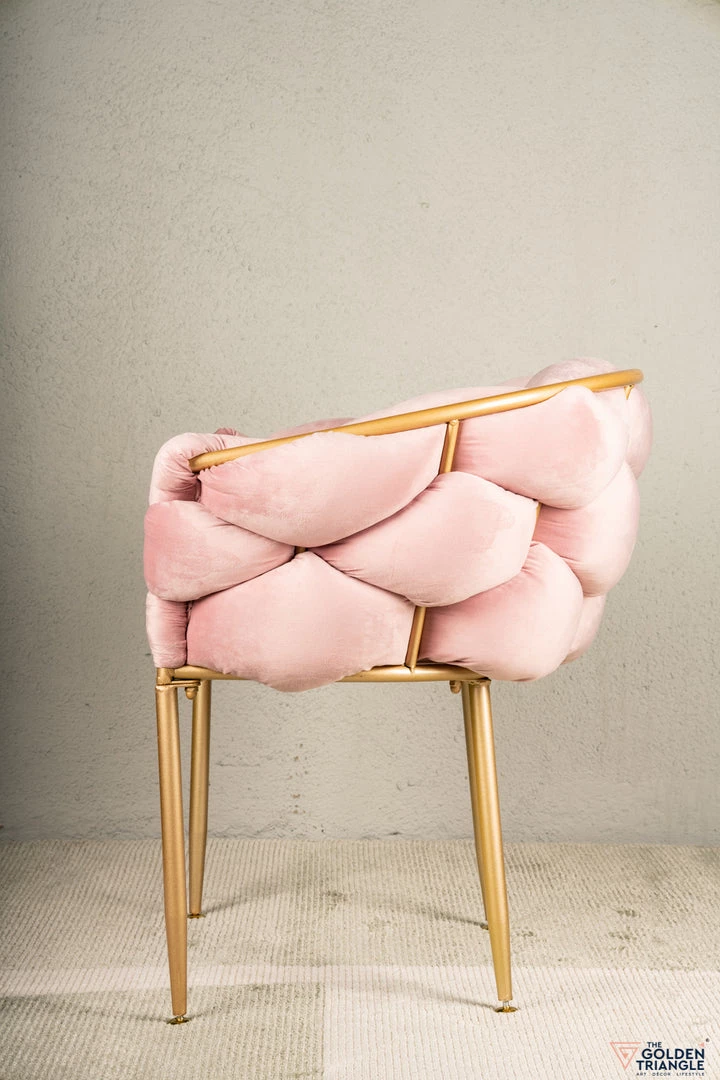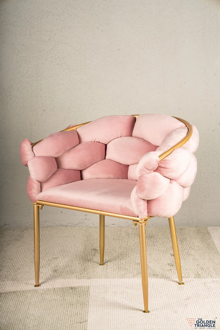 This chair is a beautiful way to accessorise your home. Upholstered in Suede, it brings a sleek style to your décor while giving it a stylish touch. The thick tufted backrest offers plenty of comfort along with deep cushioning making it a relaxing chair to sit in. Supported by a gold metal frame, it adds elegance and strength. Make this eye catching chair a statement in your den.