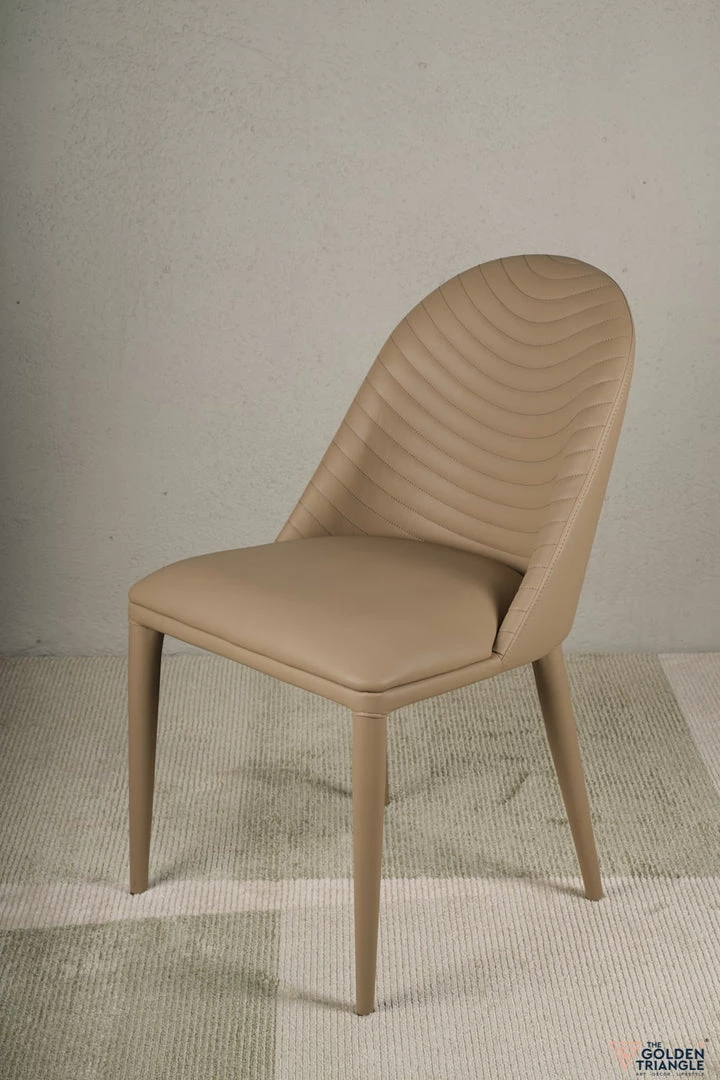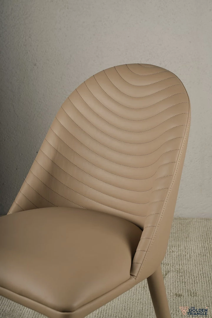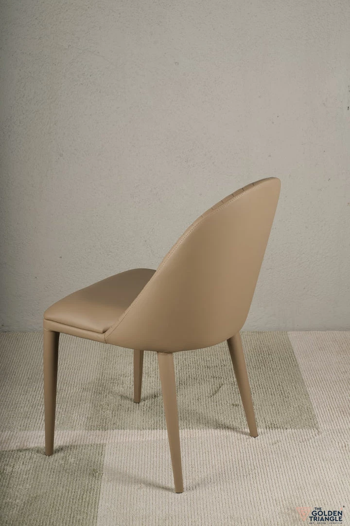 This no-nonsense dining chair is apt for all you minimalists. Its slender and sleek silhouette is covered in faux leather and add to its airy charm.