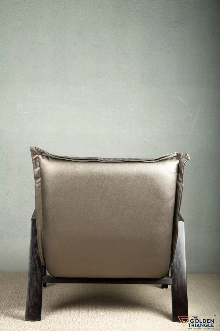 Lay back, take a breather and relax with style on this stunning metallic accent chair. Its sturdy wooden legs and armrest support a pillow-like seat that allows you to watch time-go by and probably take the best nap ever with ease.