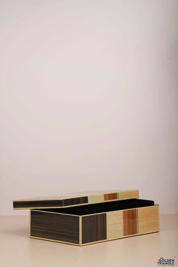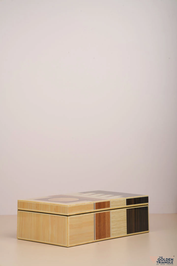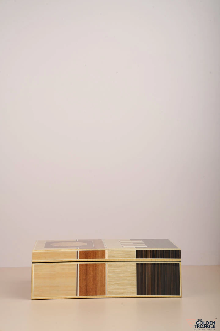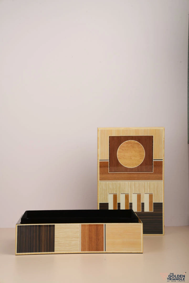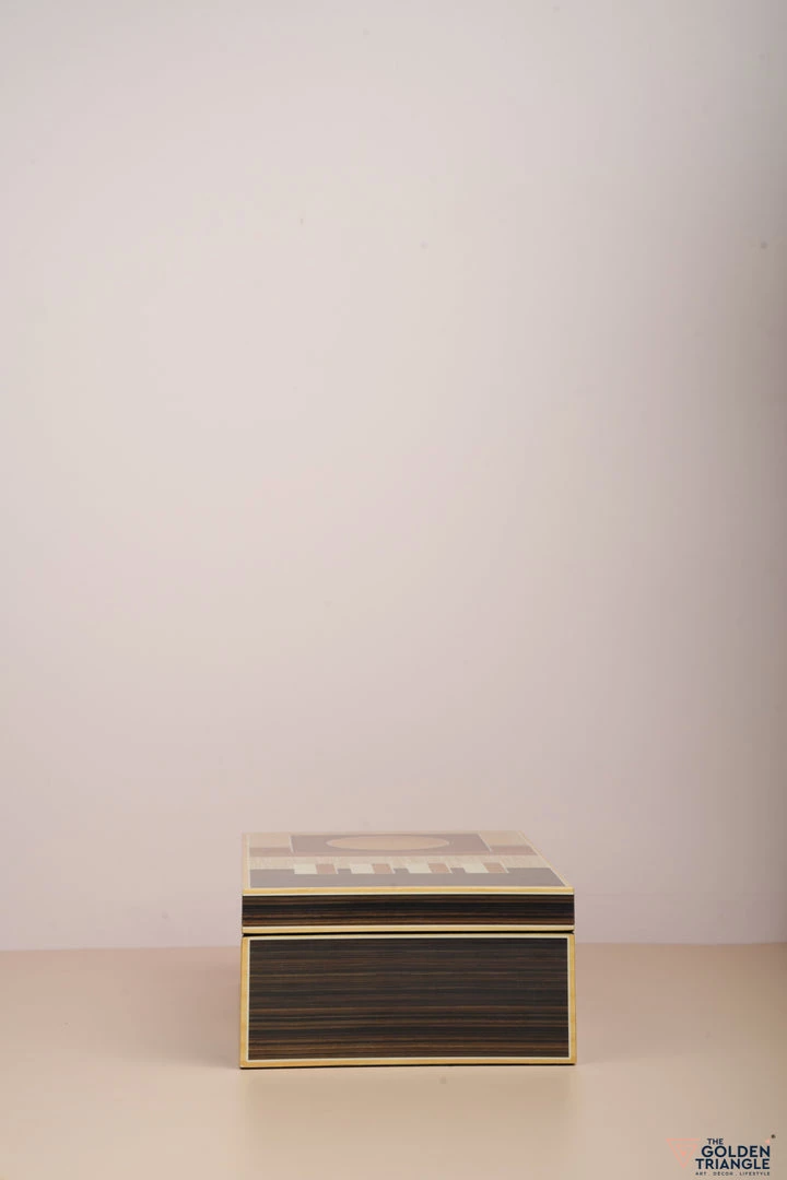 These decorative boxes are a perfect way to accessorize a vanity unit or desk space. Finished in Piano Lacquer the box immediately attracts the eye with its symmetrical geometric pattern.  Use it for storing your jewellry on a vanity or to organise your personal objects on a desk or table. .