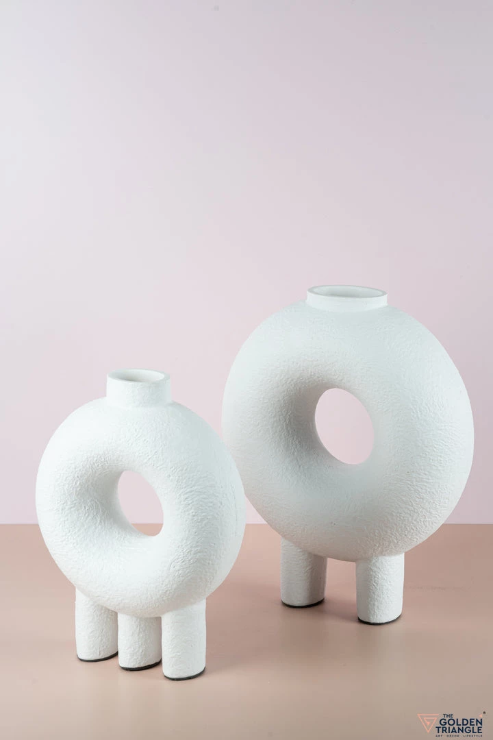 The Doughnut Vase everyone is trying to get their hands on. Beautifully crafted, suited for scandi, minimalist, mid century or just plain aesthetic home or office. Perfect to hold your fresh or dried flowers or let it speak for itself on its own.
