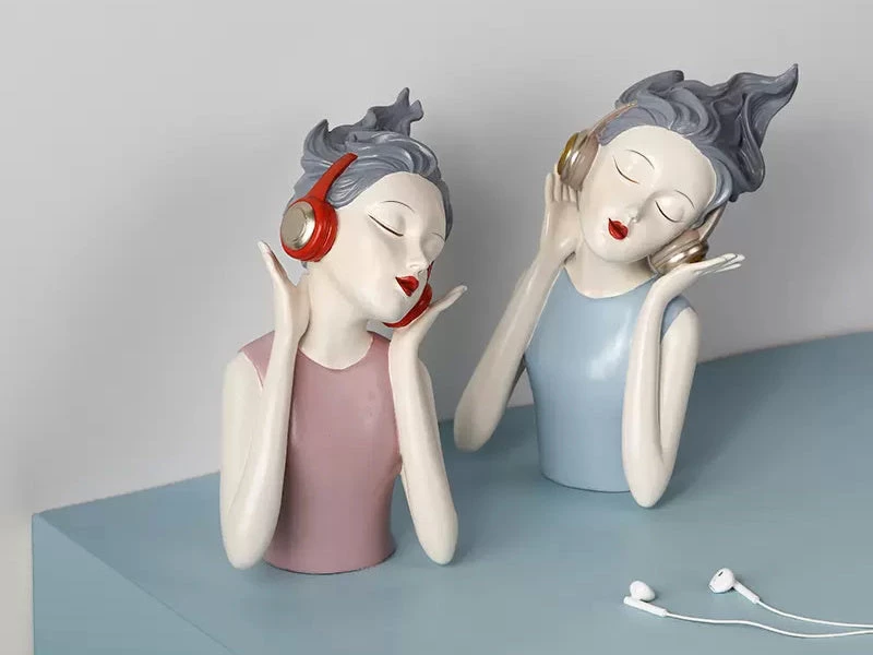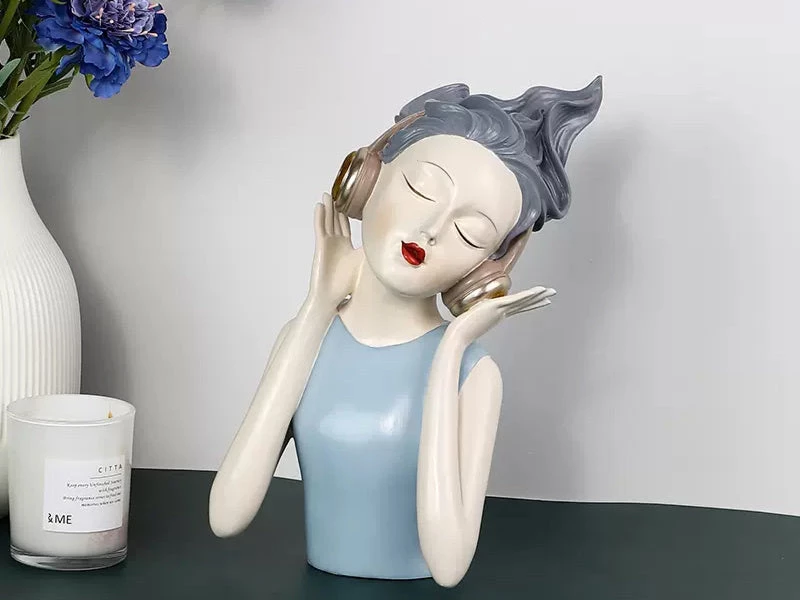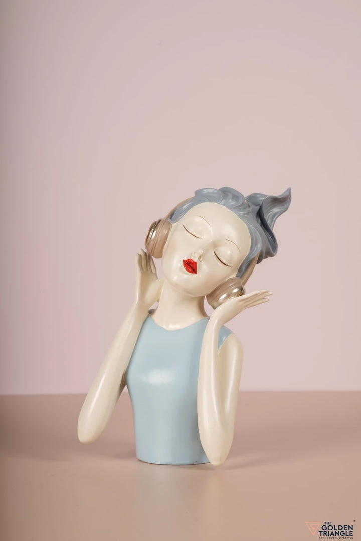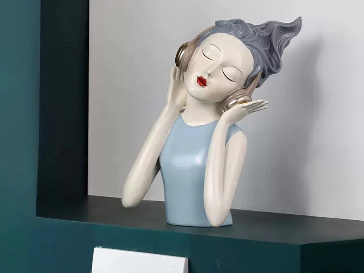Cool as a cucumber, is Olivia wearing headphones and serving looks. This figurine is apt for your cabinet, work desk or dressing table.