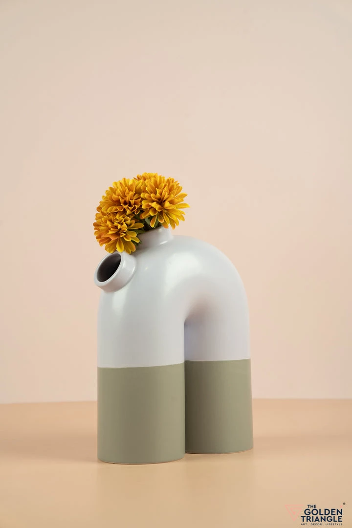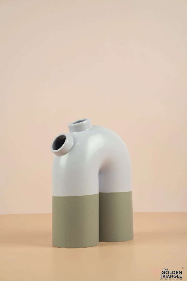 We love the simplicity and versatility of this Vase, its pastel colour, quirky design and 2 opening mouth transforms an average stem into a thing of beauty. Place a collection of this in your living room or bedroom as a modern art series. Each piece crafted in ceramic, thats eye-catching shining solo or filled with florals.