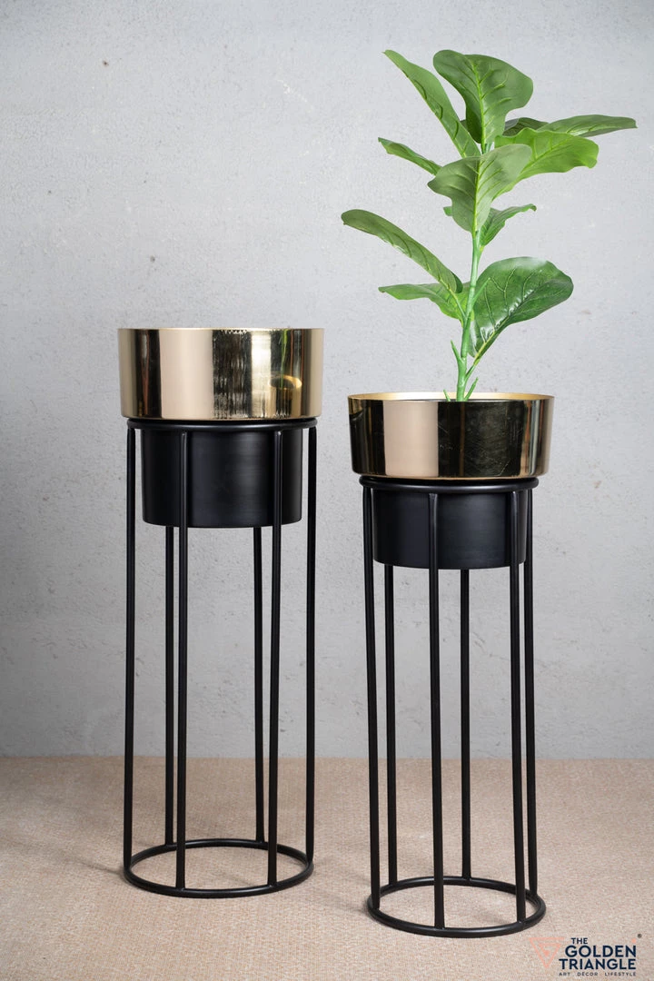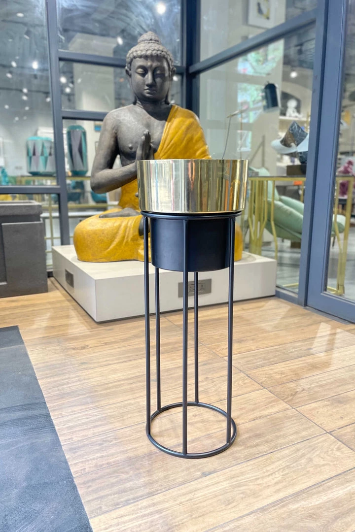 Give your plants a stylist place to sit with the help of this Pot Planter. A Solid Neutral finish, these planters are held by gold metal legs that bring glam, style to your entryway or living room.