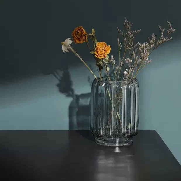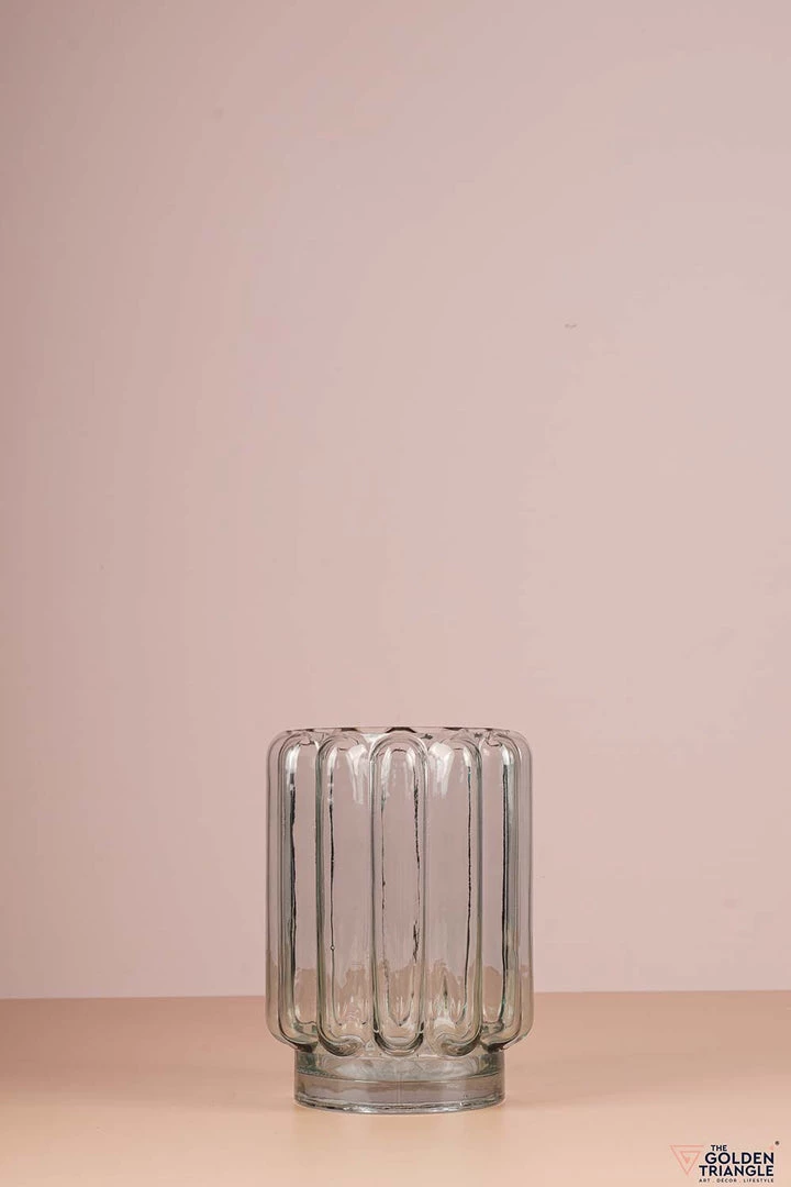 Minimal yet classic, our cylindrical and rippled vase is made with transparent glass to make your blooms stand out.