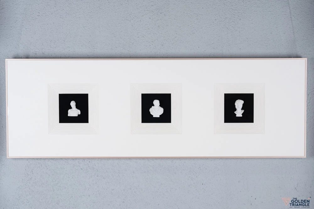 This unique wall décor of 3D Roman figurines bust placed in a condensed shadow box is truly a unique design brought to life. This frame is the perfect way to bring some classic art into your space.
