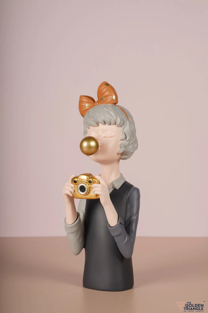 Exuberating vintage air with a pop of colour is this miniature figurine with a bubblegum and a camera. A chic accessory for your corner table that will take you to the retro age at a single glance.