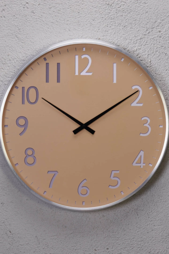If a modern update is what your room needs, this wall clock is a perfect way to add a touch of contemporary design with a silver frame and yellow tone analogue face. The minimalist frame design is sure to add a touch of sophistication to your living room.