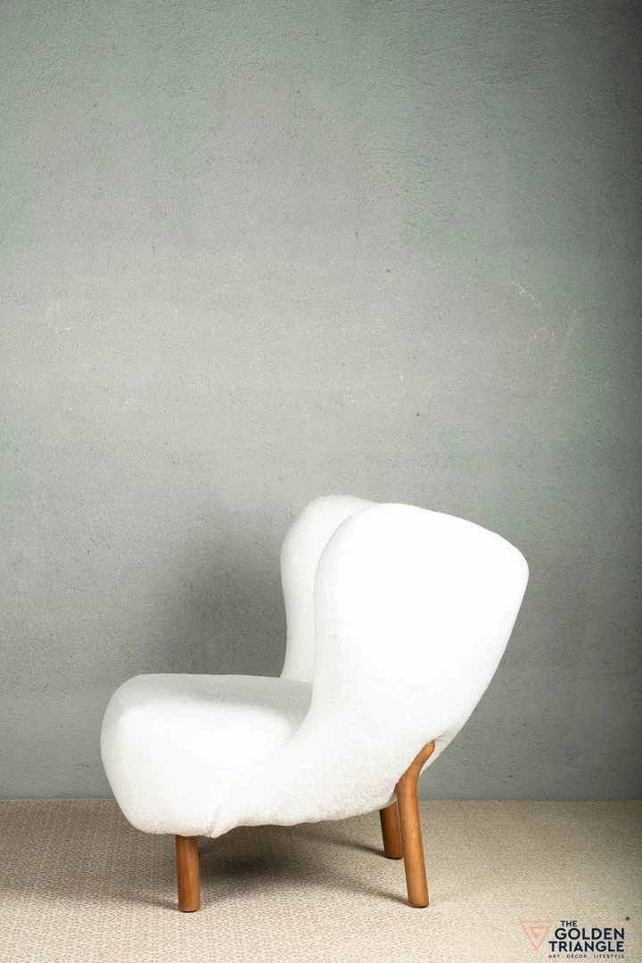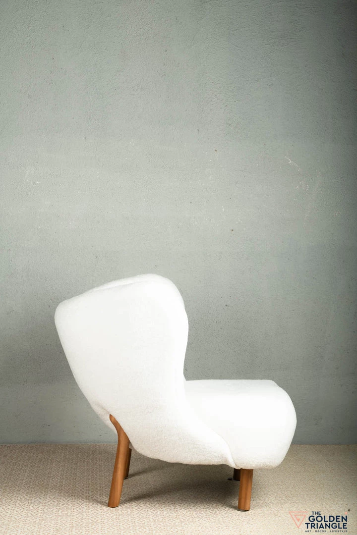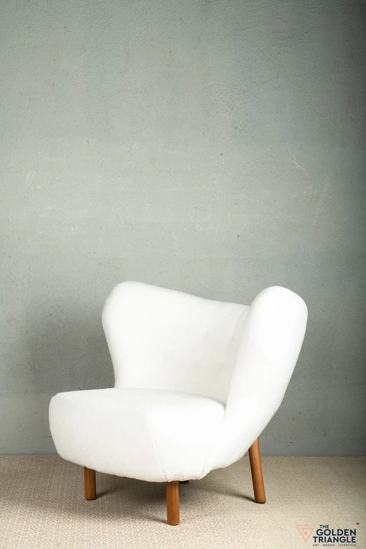 This gorgeously crafted wingback chair is a conversation starter! Atop sturdy wooden legs sits a faux lamb wool seat that is well-cushioned for comfort and flaunts subtle button-tufts for texture.