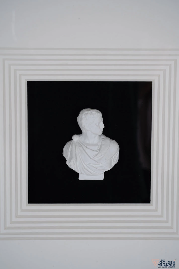 This unique wall décor of 3D Roman figurines bust placed in a condensed shadow box is truly a unique design brought to life. This frame is the perfect way to bring some classic art into your space.
