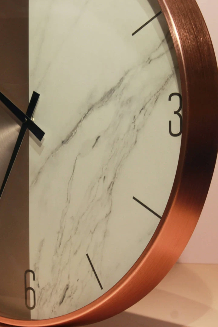 If a modern update is what your room needs, this wall clock is a perfect way to add a touch of contemporary design with a copper frame and dual tone analogue face. The minimalist frame design is sure to add a touch of sophistication to your living room.