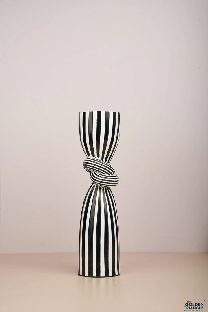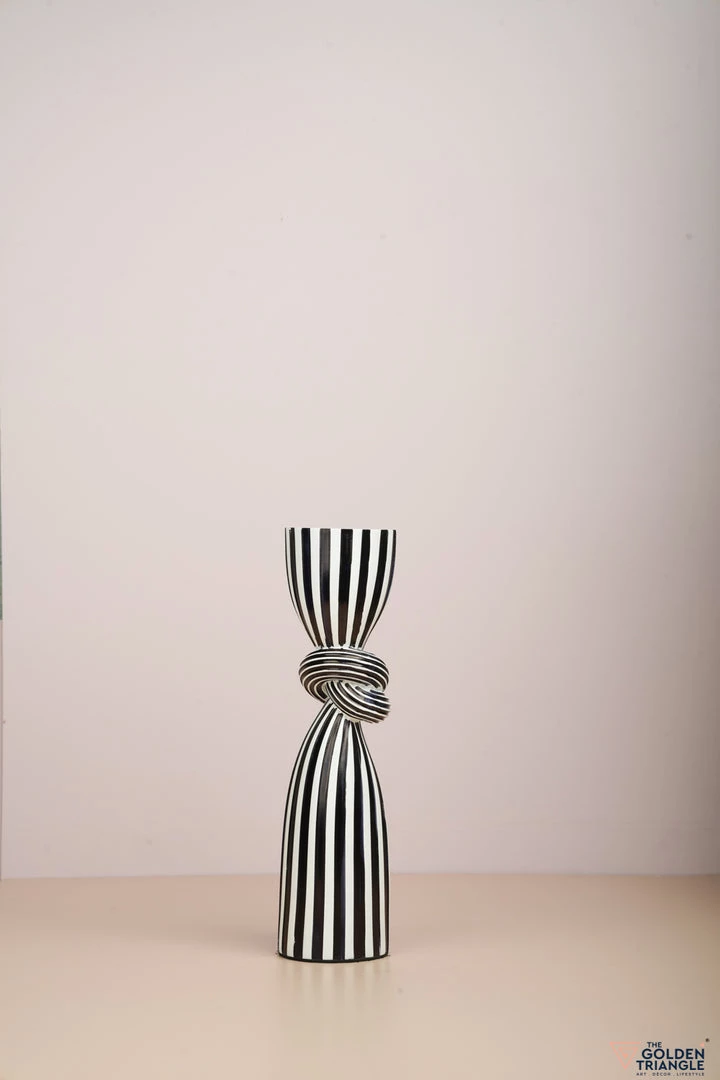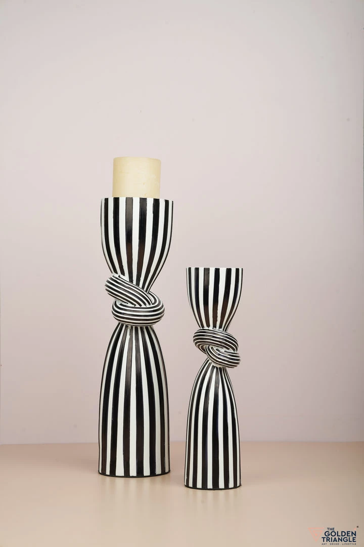 Elegant and artistic flair, these striking candle stand offers both. With a minimalist black and white striped design, these knotted candle stand makes a grand statement whether the candles are lit or not.