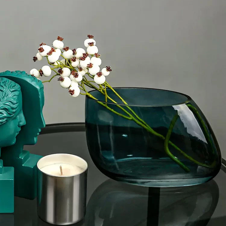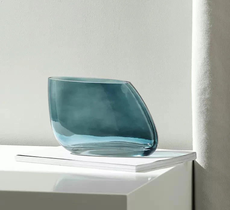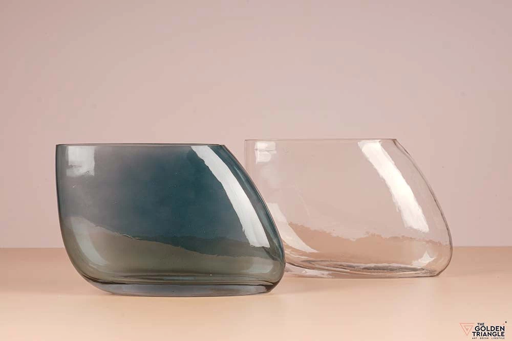 For those who are inclined towards abstract objects of craft, this delicately tilted glass vase will surely be loved by them.