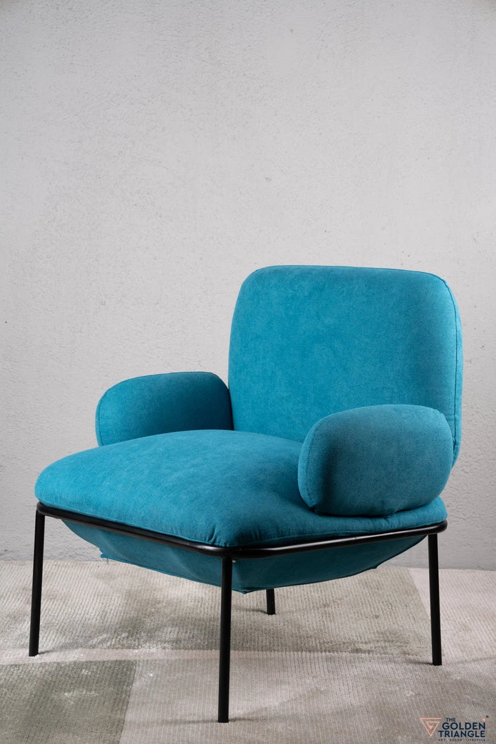 From its soft inviting curves to the comfortable cushioning, every detail of this chair is irresistible. Comfortably Cushioned and covered in soft fabric sitting on metal legs, this chair is perfect for your living room or Office space.Â