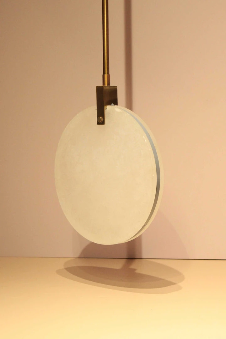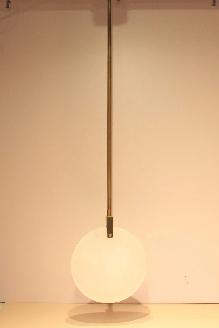 A slender marble framed hanging light in a lovely white, suspended by a gold pipe. A charming add-on that will match any décor mood board.