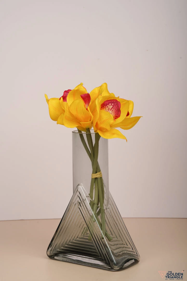 Fluted and Rippled for artistic effect, this translucent glass vase is an abstract and stunning abode for your faux and fresh florals.