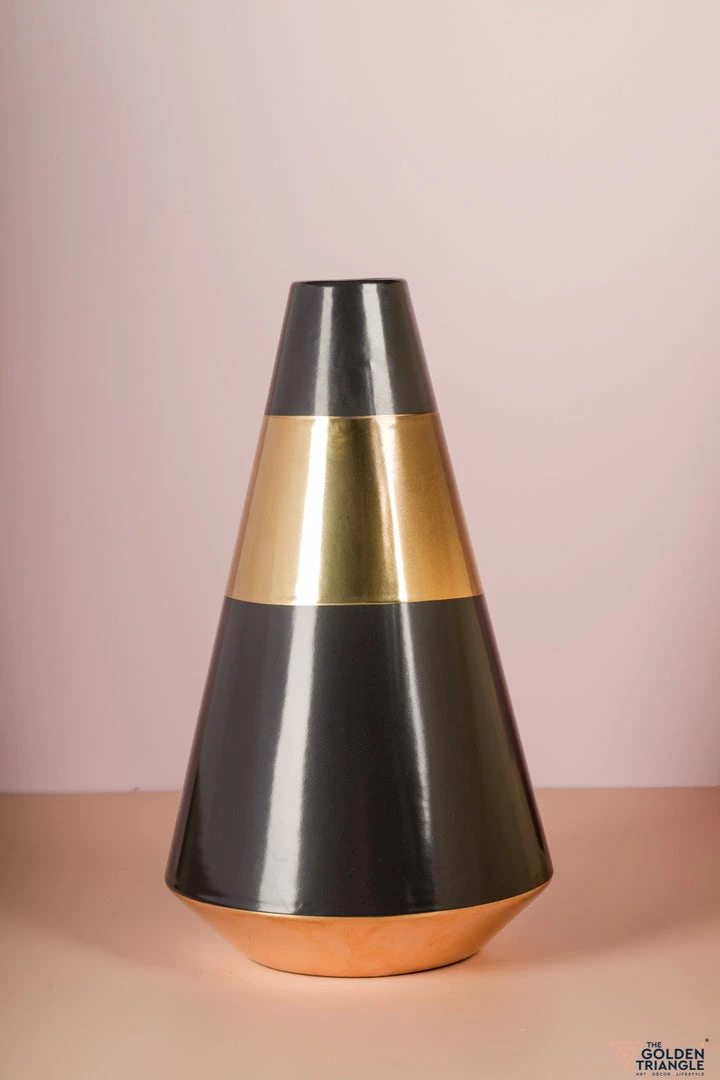 Store your sticks and blooms in this gold and white ceramic vase with a slender silhouette. A Vase that is elegant as a standalone piece too.