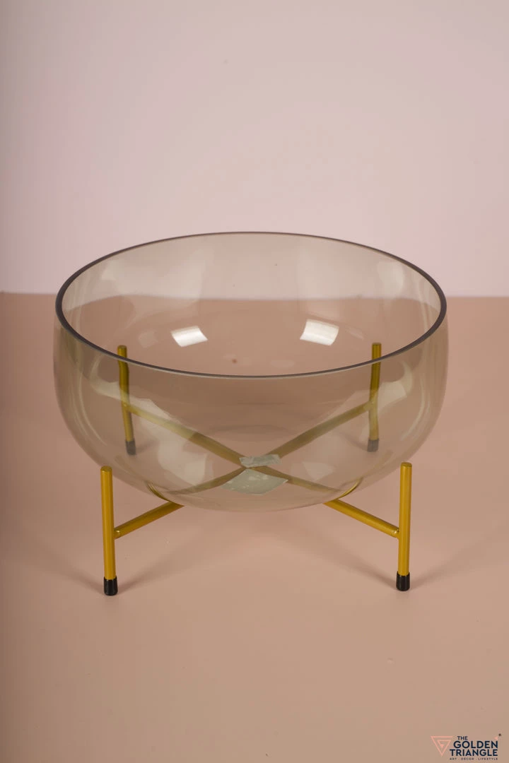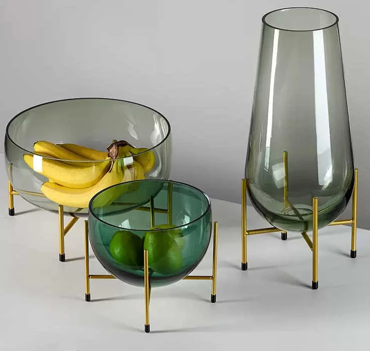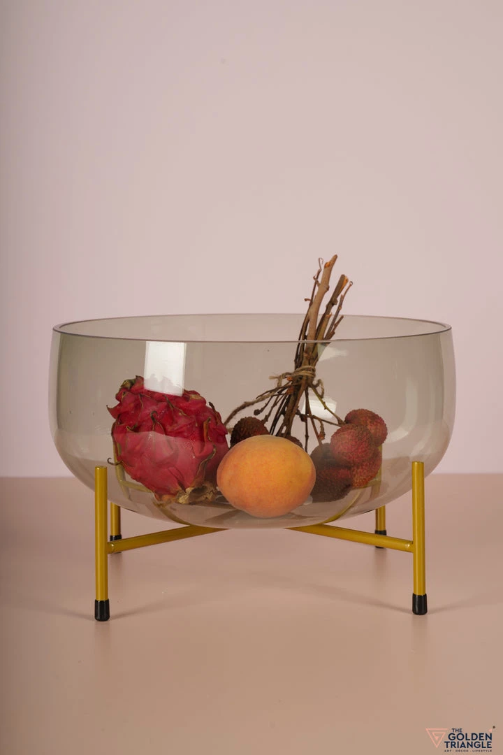 Gorgeously green, this sophisticated fruit bowl with a brushed-gold metal stand is for the dinner table aesthetes