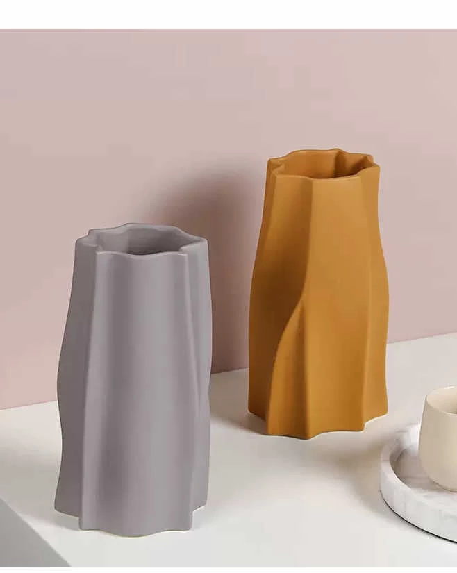 Smooth Ceramic finishing and effortless folds make this Nordic vase in earthy pastels a must-have for every modern mood board.