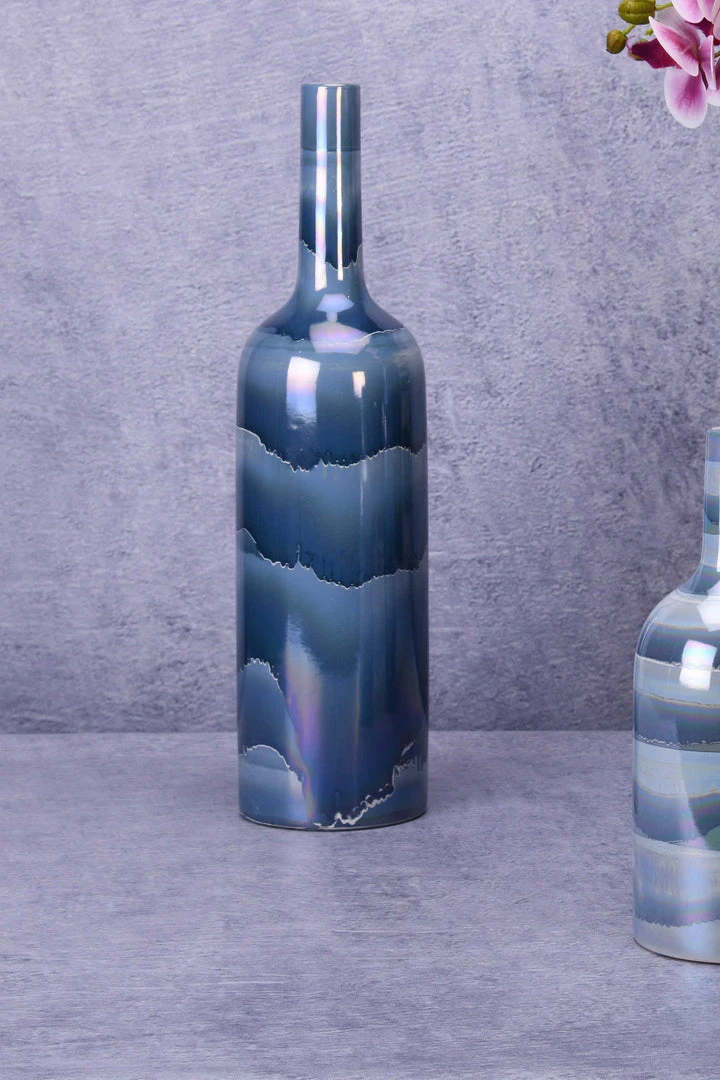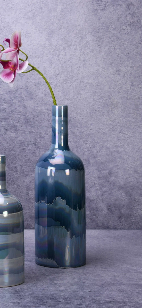 Inspired by the mighty blue and serene waves of the ocean, this ceramic blue bottle vase is gleaming and eye-catching especially when grouped together in different sizes.