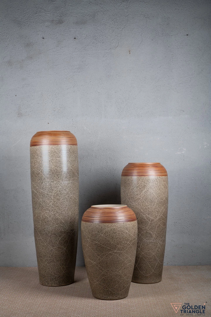 Welcome contemporary style into your room. Its striped pattern will add a modern appeal to your living room, hallway, office or any corner of the room. The vase is enough to show off without any fillings. For a more striking display, fill it up with dry branches or tall grass. Triple-up the charm of any corner by placing all three-sizes of this collection together.