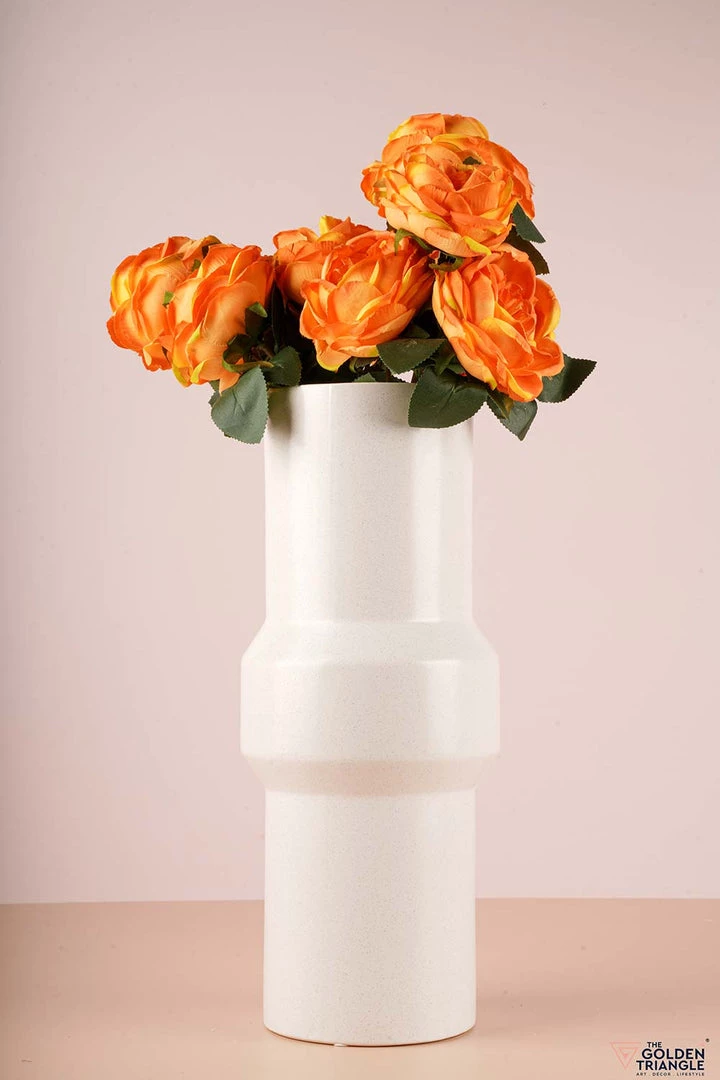 Creating a classy statement is this stark white cylindrical ceramic vase that flaunts a sleek structure for artistic effect.