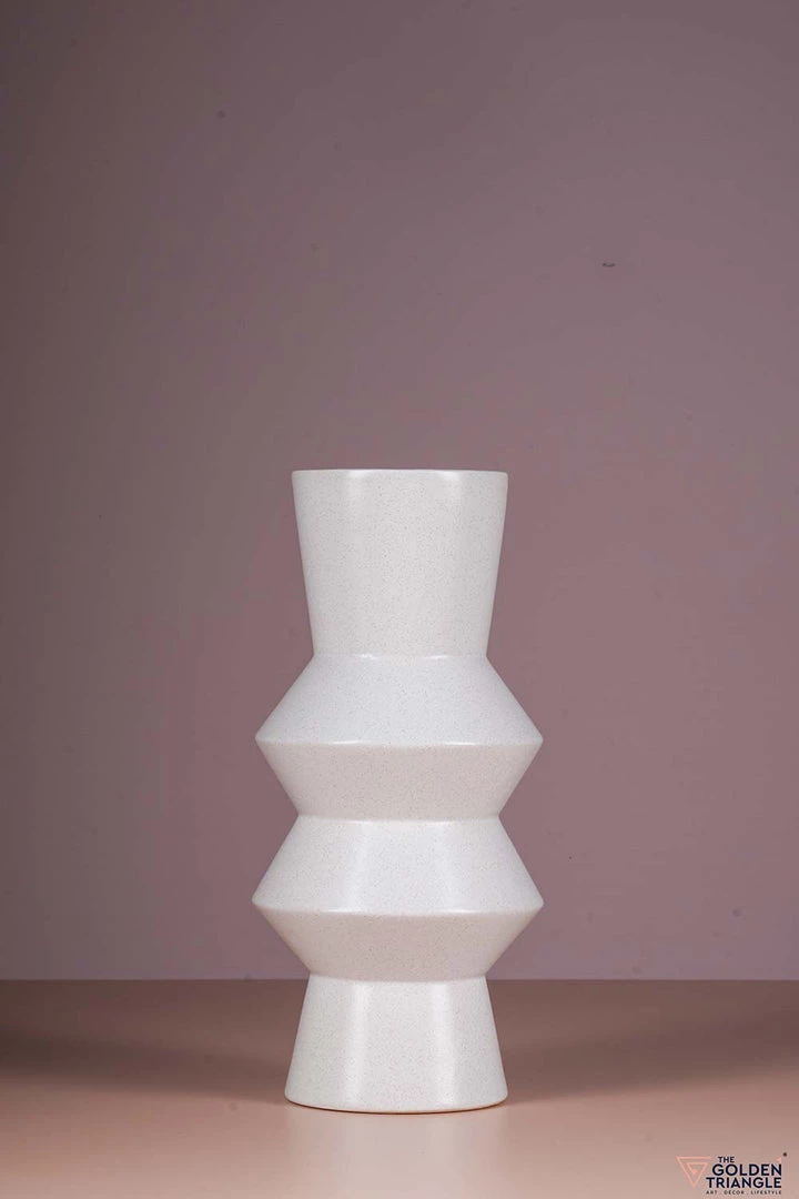 Creating a classy statement is this stark white geometric vase that flaunts a fine zig-zag silhouette for artistic effect.